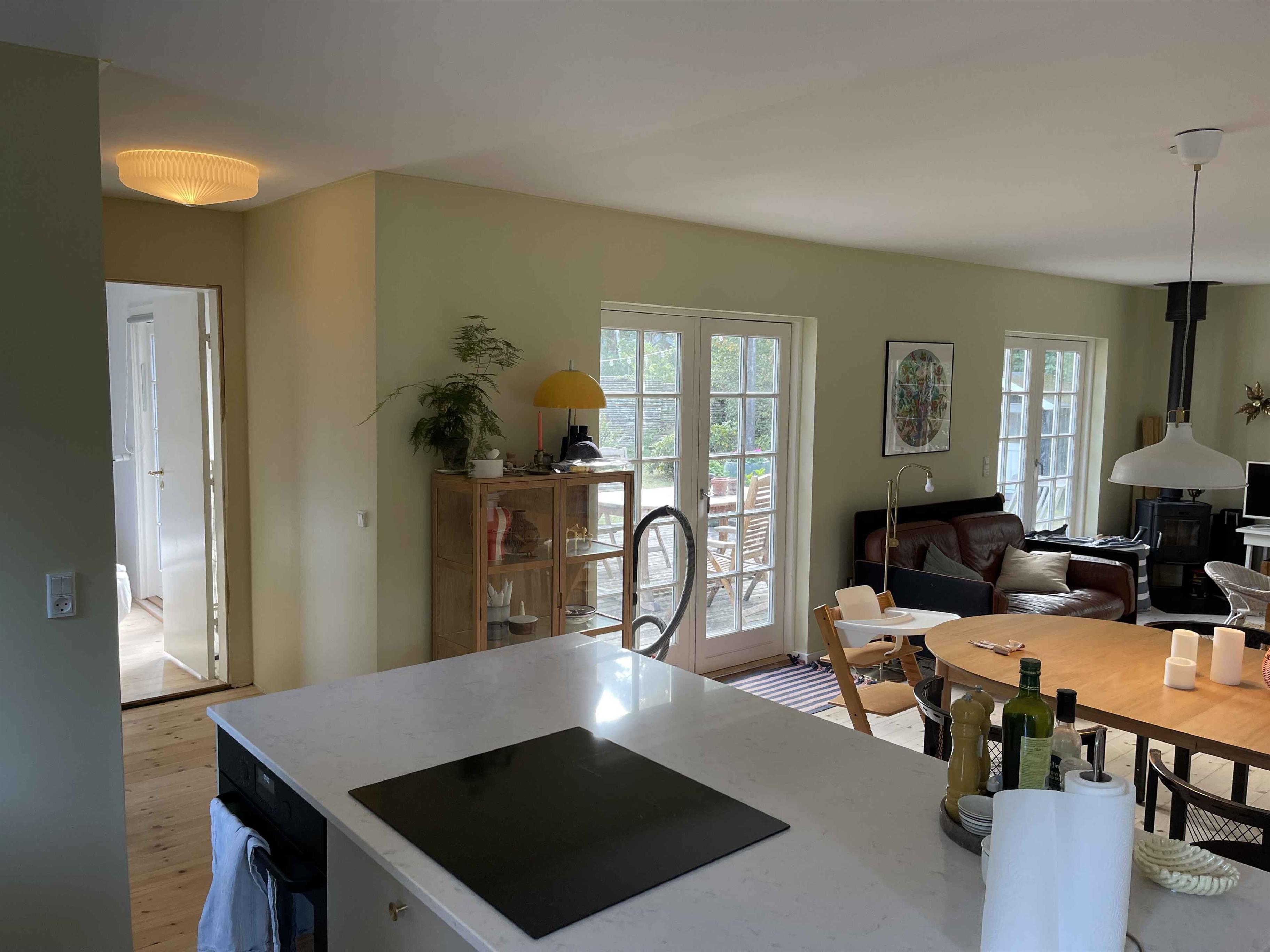 Det hyggelige sommerhus på 64 m² giver jer en enkel og velfungerende ramme om ferien. Her er to soveværelser – et godt forældreværelse og et mindre værelse til børn – samt fire sovepladser i alt, hvilket gør huset oplagt til en lille familie eller et par, der ønsker ro og nærhed. Indenfor finder I et nyistandsat køkken med god spiseplads og udsigt til haven. Køkkenet ligger i naturlig forlængelse af stuen, som rummer en hyggelig krog til afslapning om aftenen. Planløsningen gør det let at samles, uanset om I laver mad, spiller spil eller læser en bog. Afstanden til vandet er 900 meter, og området indbyder til daglige gåture mod stranden, hvor I kan nyde natur og hav. Det nærliggende AP Møller område og Rågegårdens imponerende rhododendroner giver særlige naturoplevelser, der især om foråret er værd at opleve. Området kombinerer kystnatur med gode aktiviteter og udflugtsmuligheder. Gilleleje og Liseleje ligger inden for kort køreafstand og tilbyder både shopping, caféer, havnemiljø og spisesteder. Blistrup giver jer nem adgang til indkøb, og der er gode cykelruter, små stier og skovområder rundt om huset. Nabolaget er roligt og præget af grønne omgivelser, hvilket gør det nemt at koble fra og nyde feriedagene i et afslappet tempo. Den lille have giver plads til leg, grill og soltimer i private rammer. Som helhed er dette et feriehus, hvor enkelhed, beliggenhed og naturoplevelser går hånd i hånd – perfekt til gæster, der ønsker en ukompliceret ferie tæt på strand, skov og hyggelige kystbyer.