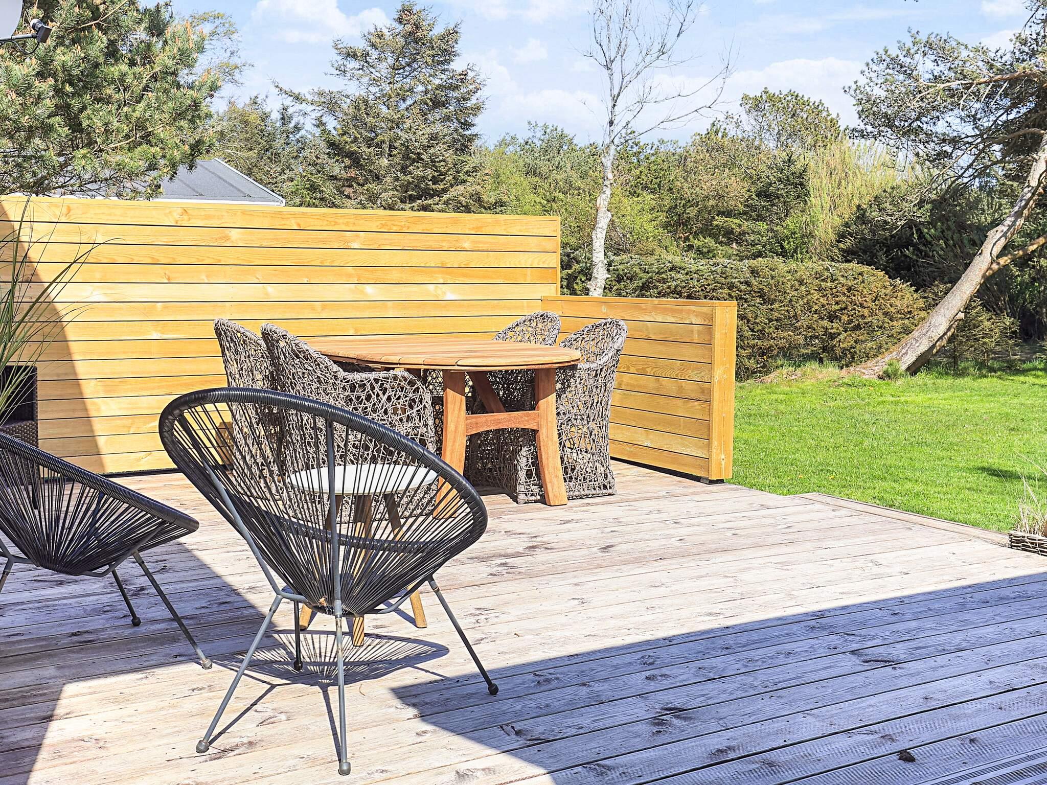 Dette traditionelle og velholdte feriehus ligger på en ugeneret græsplæne for enden af ??en rolig blind vej i Grønhøj, med en særdeles attraktiv beliggenhed tæt på strand og Vesterhavet. Udenfor giver en stor terrasse god plads til at nyde sommervejret og fredelige omgivelser. Terrassen har et indbydende spabad og en praktisk udendørs bruser, perfekt til at slappe af i det fri. Den rummelige have byder på masser af plads til boldspil, solbadning eller blot at slappe af i naturen.