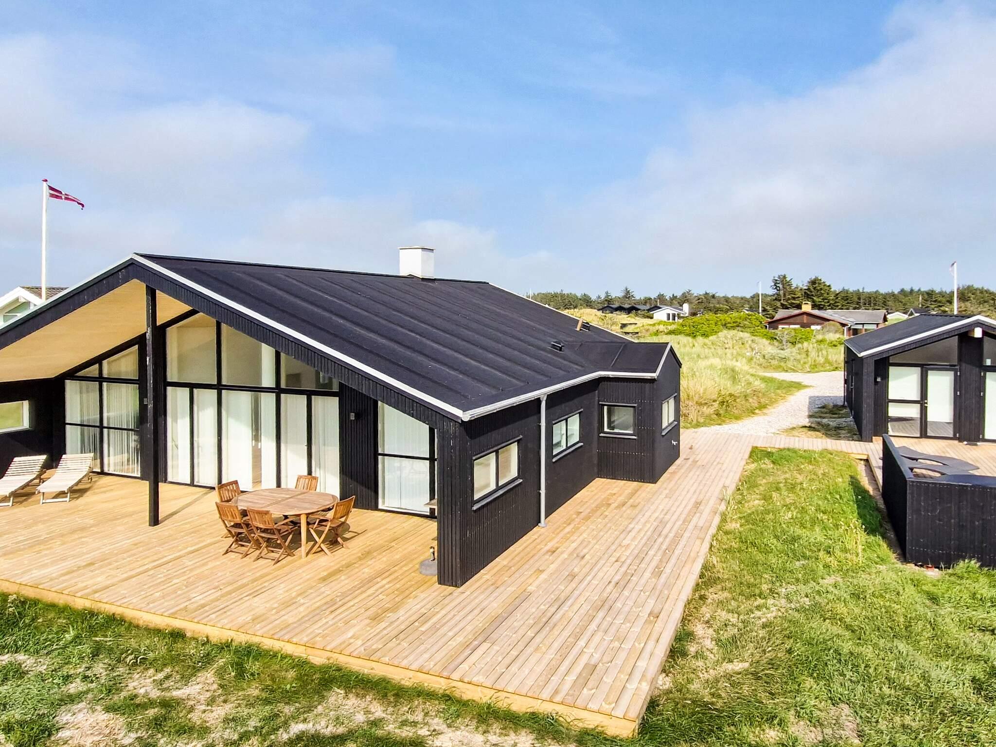 Udenfor finder du to store velplacerede terrasser på i alt 196 m², heraf to overdækkede terrasser på henholdsvis 32 m² og 6 m² med udsigt til området og Vesterhavet. Fra medio juni 2025 får huset desuden et markant udvidet terrasseareal og et dejligt vildmarksbad.