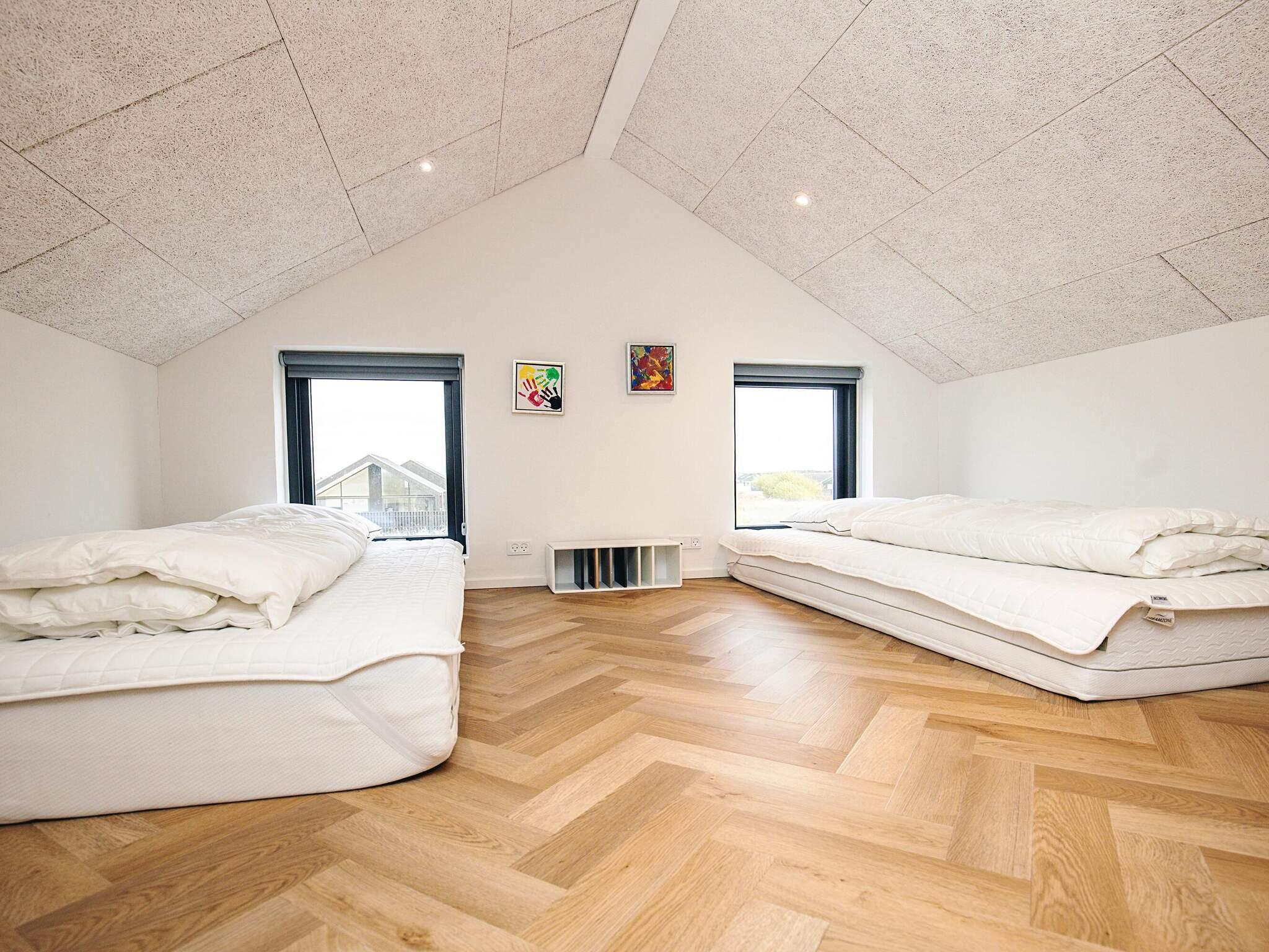 Der er i alt 3 soveværelser. Sovepladserne fordeler sig på: 6 sovepladser i dobbeltsenge. 2 sovepladser på madrasser. 2 af disse sovepladser befinder sig på husets hems.