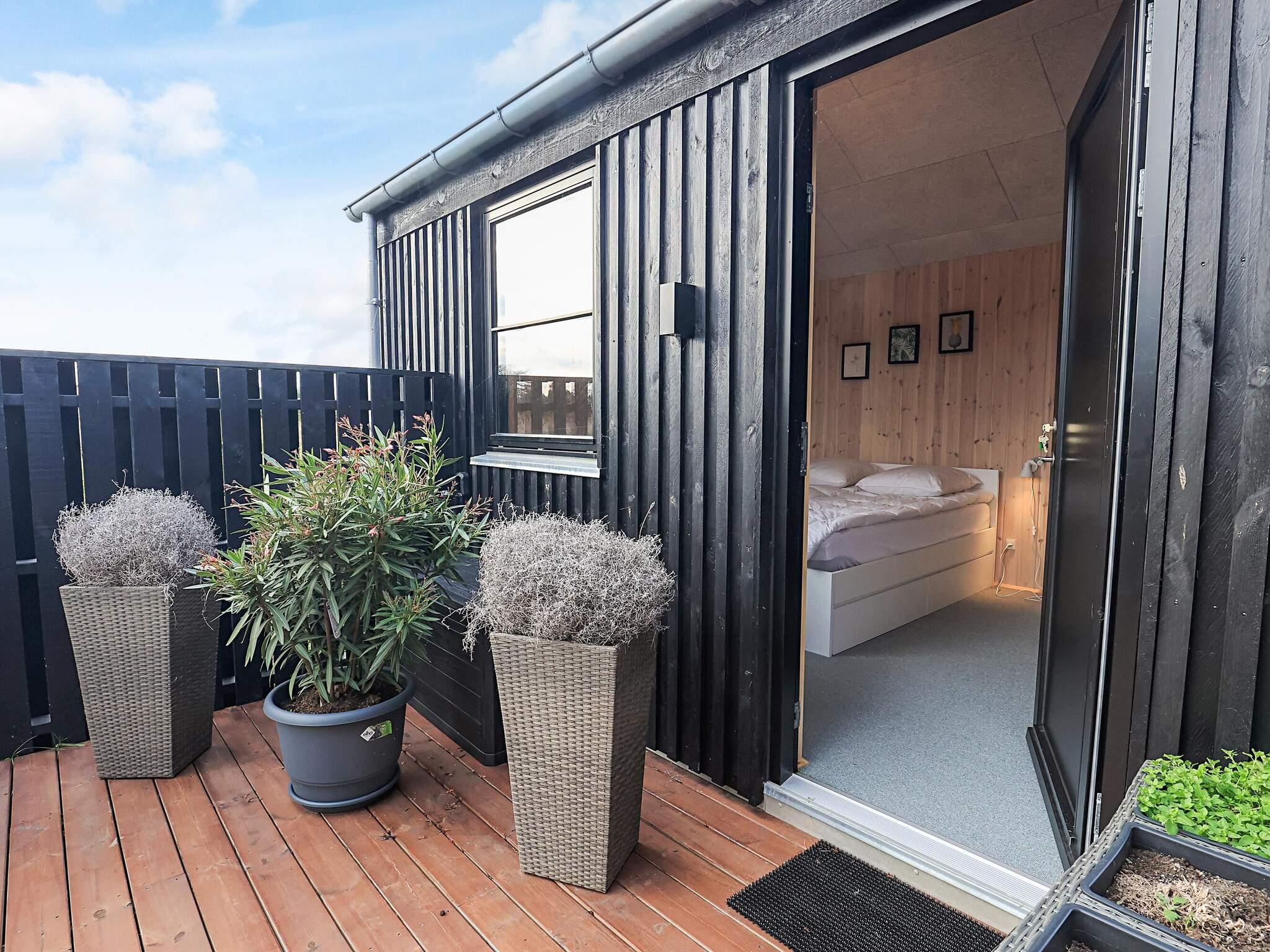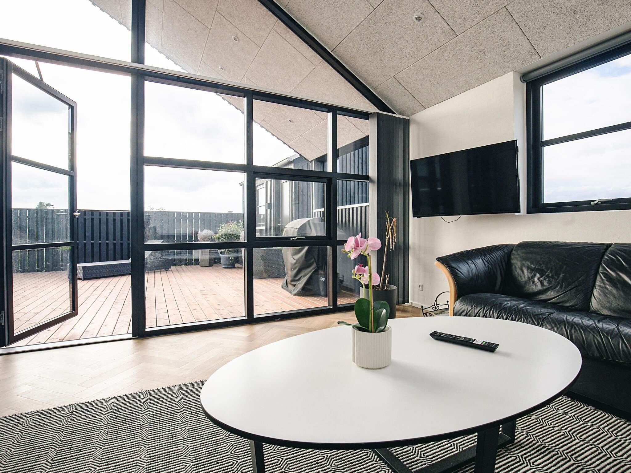 Sommerhuset er beliggende i et nybygget område, for enden af en vej med en ugenert udsigt. I huset er der plads til hele familien - både indenfor med hyggelige kroge og udendørs på den store træterrasse.