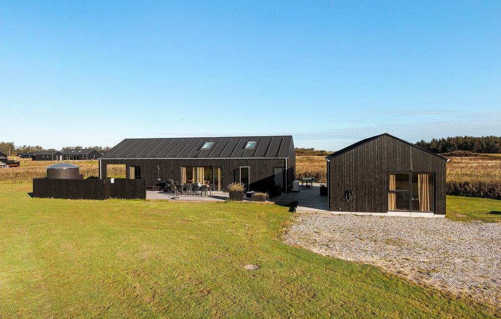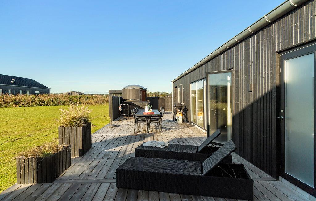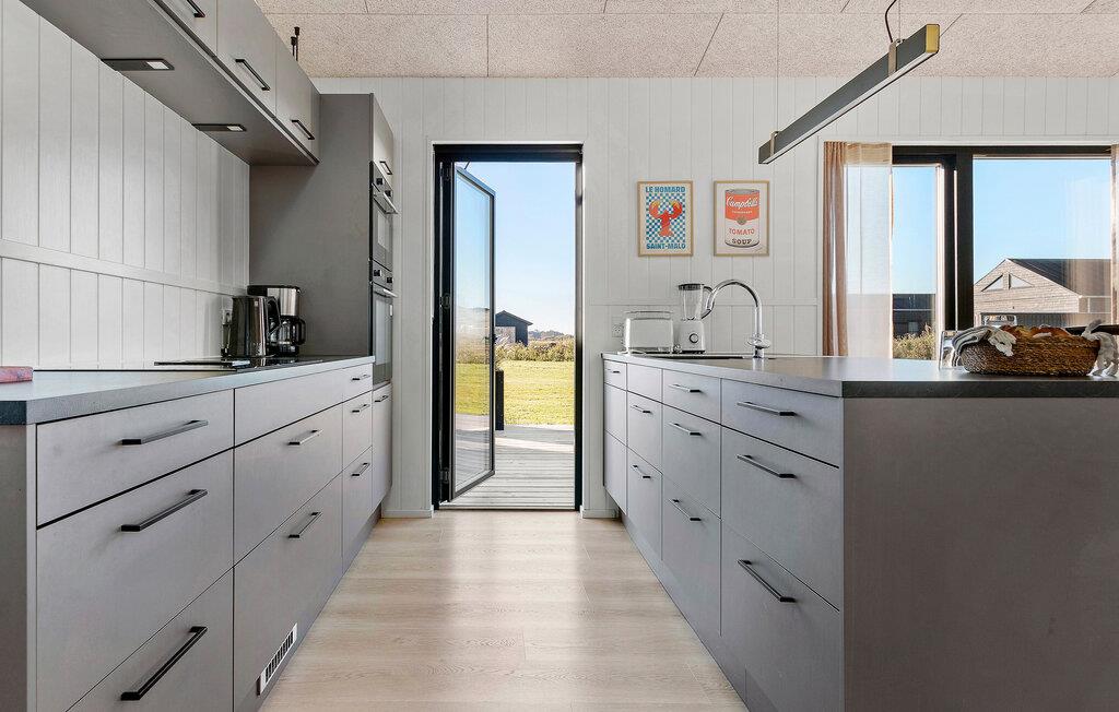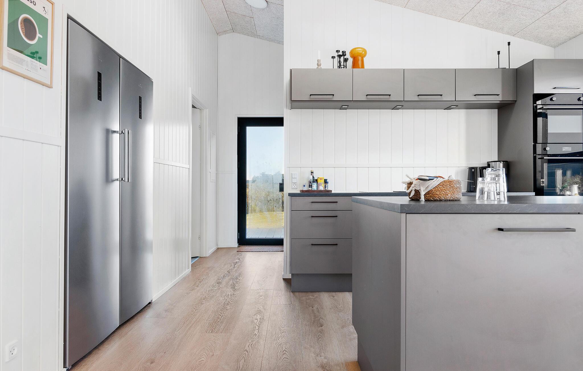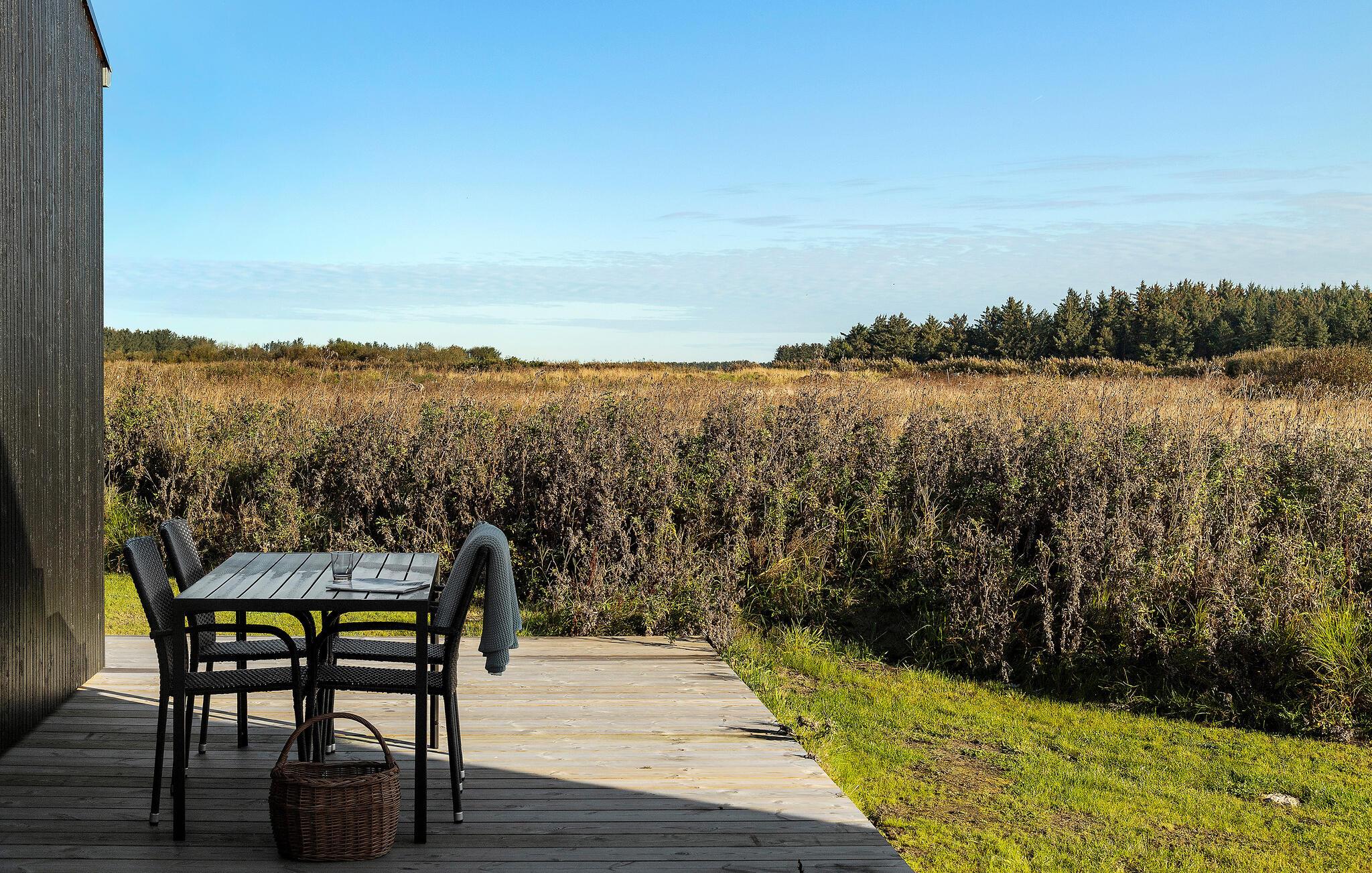 Dette hyggelige sommerhus, der er ideelt for to familier, ved Løkken Strand forener skandinavisk charme med moderne bekvemmeligheder. Start dagen med en afslappet morgenmad ved det store spisebord af træ og nyd den pragtfulde udsigt gennem de gulv-til-loft vinduer til naturen. Alternativt kan I også spise på den rummelige terrasse, som giver jer en behagelig atmosfære i godt vejr. I det åbne, moderne køkken kan ethvert måltid let tilberedes.