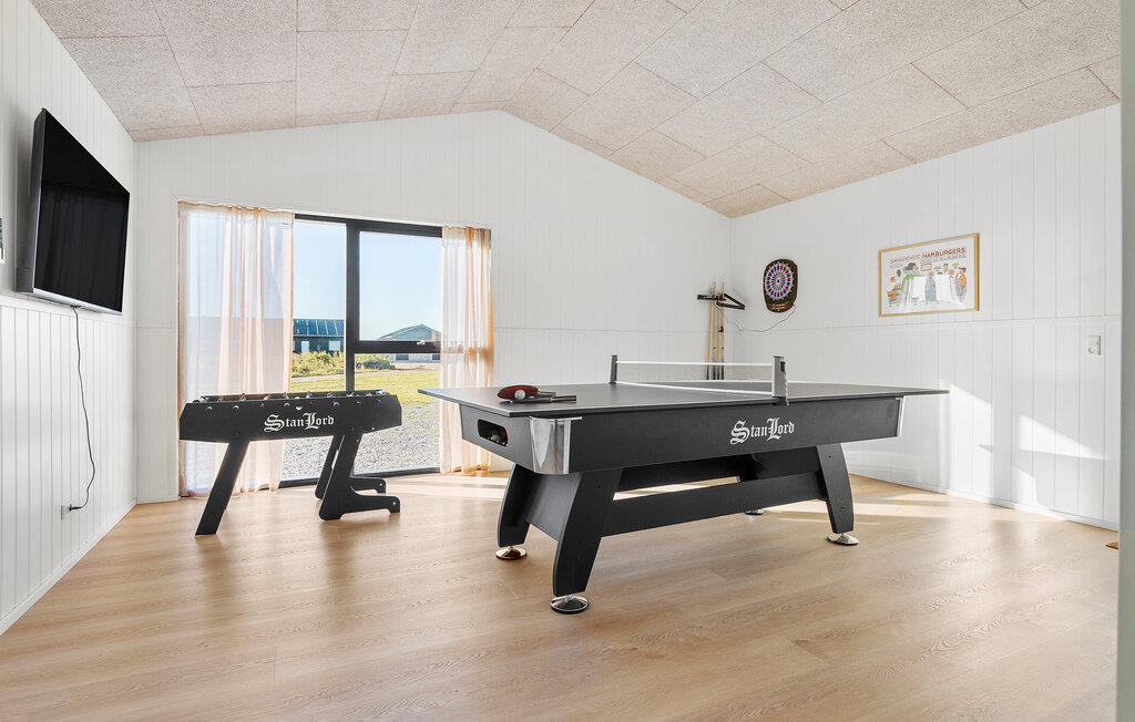 Efter en begivenhedsrig dag kan I slappe af i det varme spabad på terrassen eller bruge den velgørende sauna til at løsne musklerne. Hvis I stadig har energi, kan I udfordre familien til en omgang bordtennis, billard, dart eller bordfodbold i aktivitetsrummet.