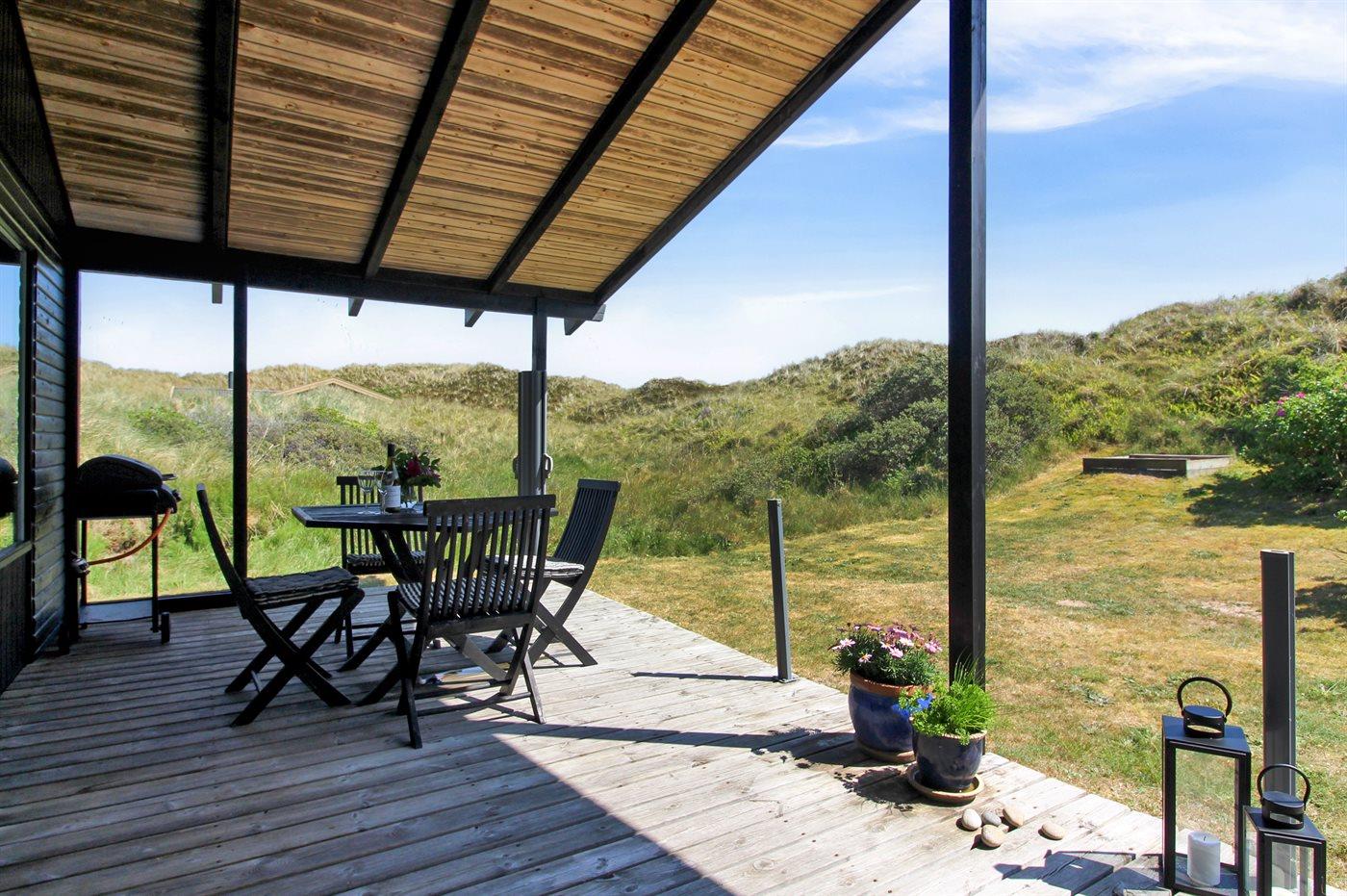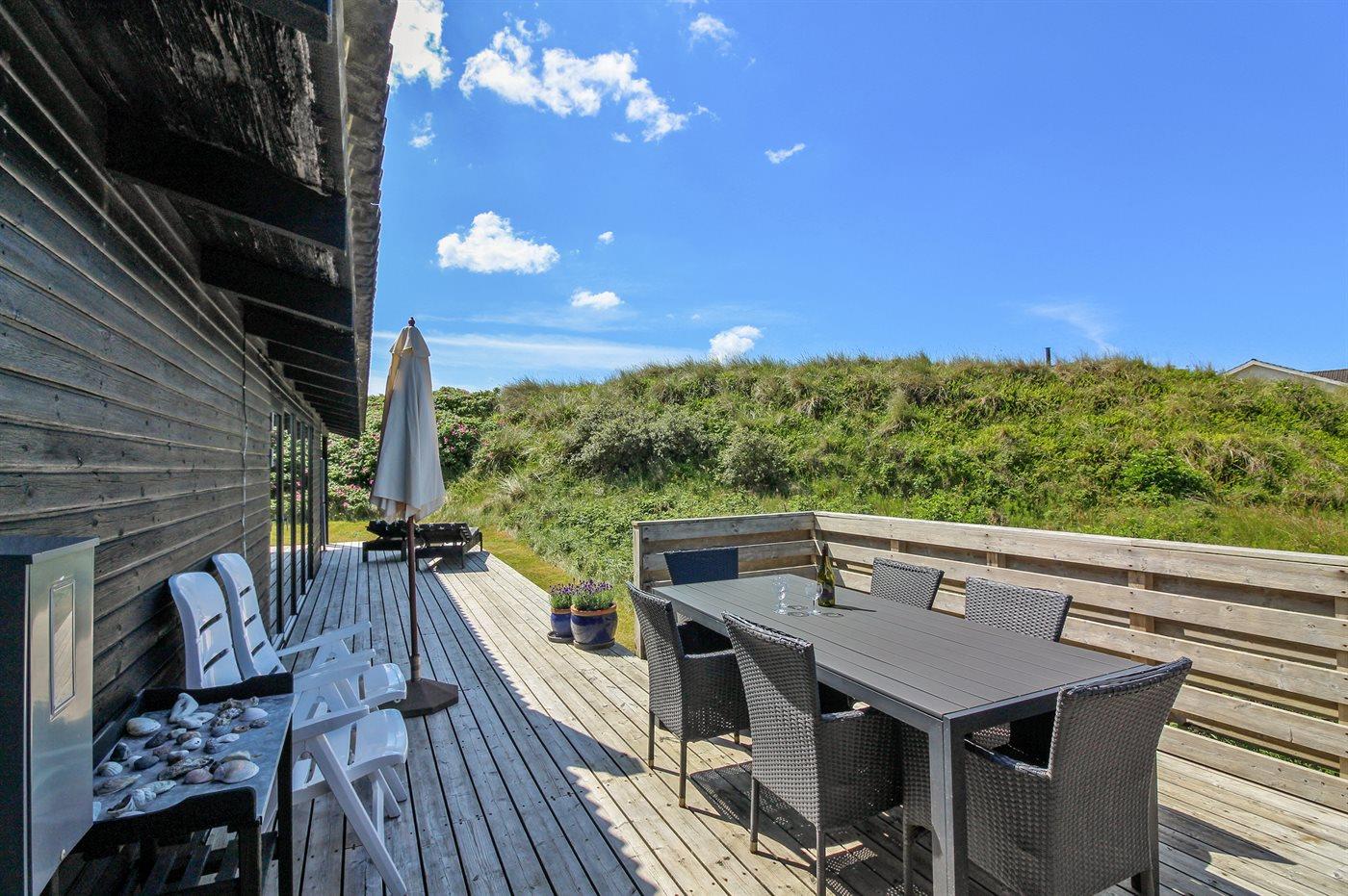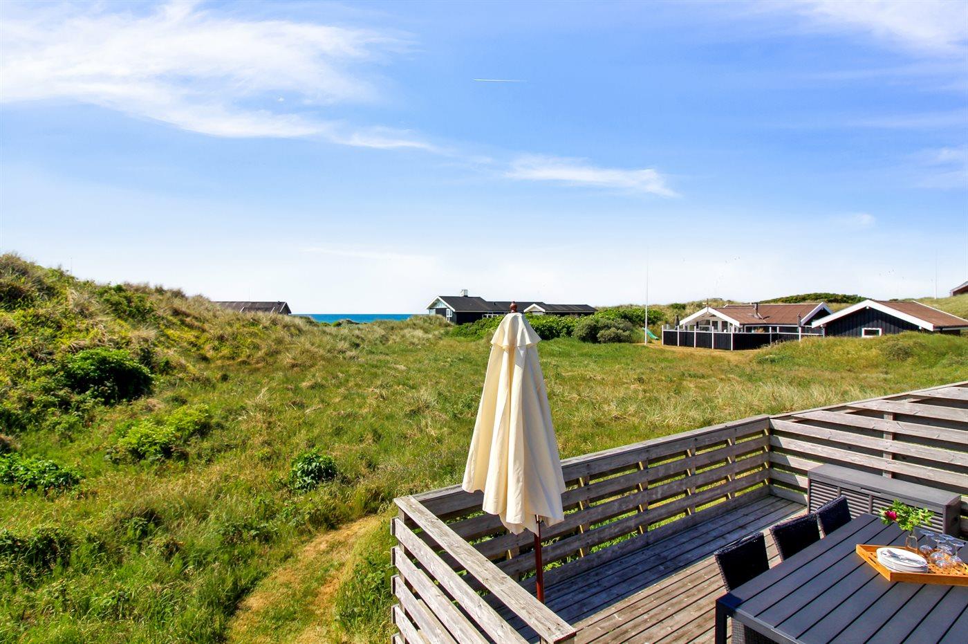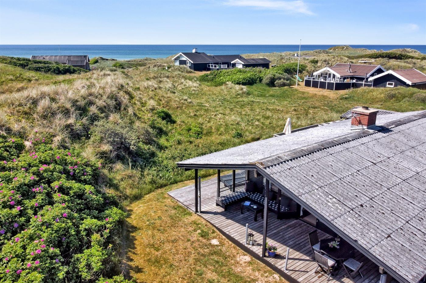 Hyggeligt sommerhus i Grønhøj med havudsigt og skøn stor terrasse på klitgrund tæt ved Vesterhavet.