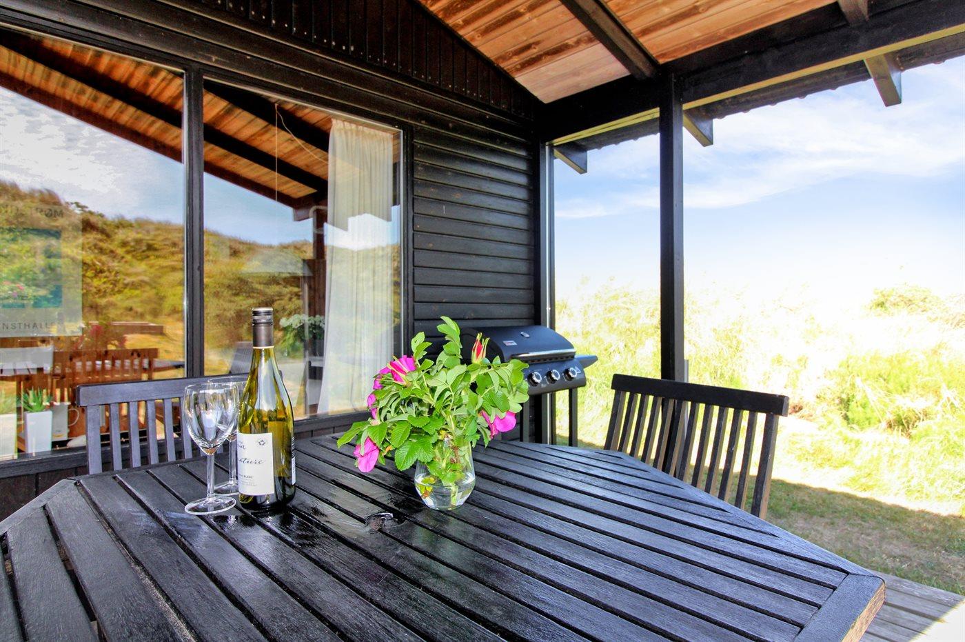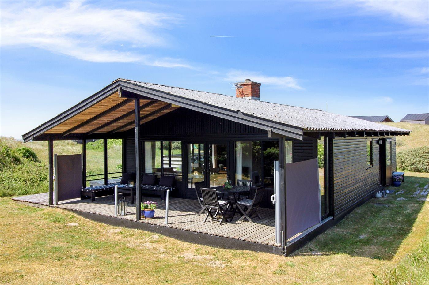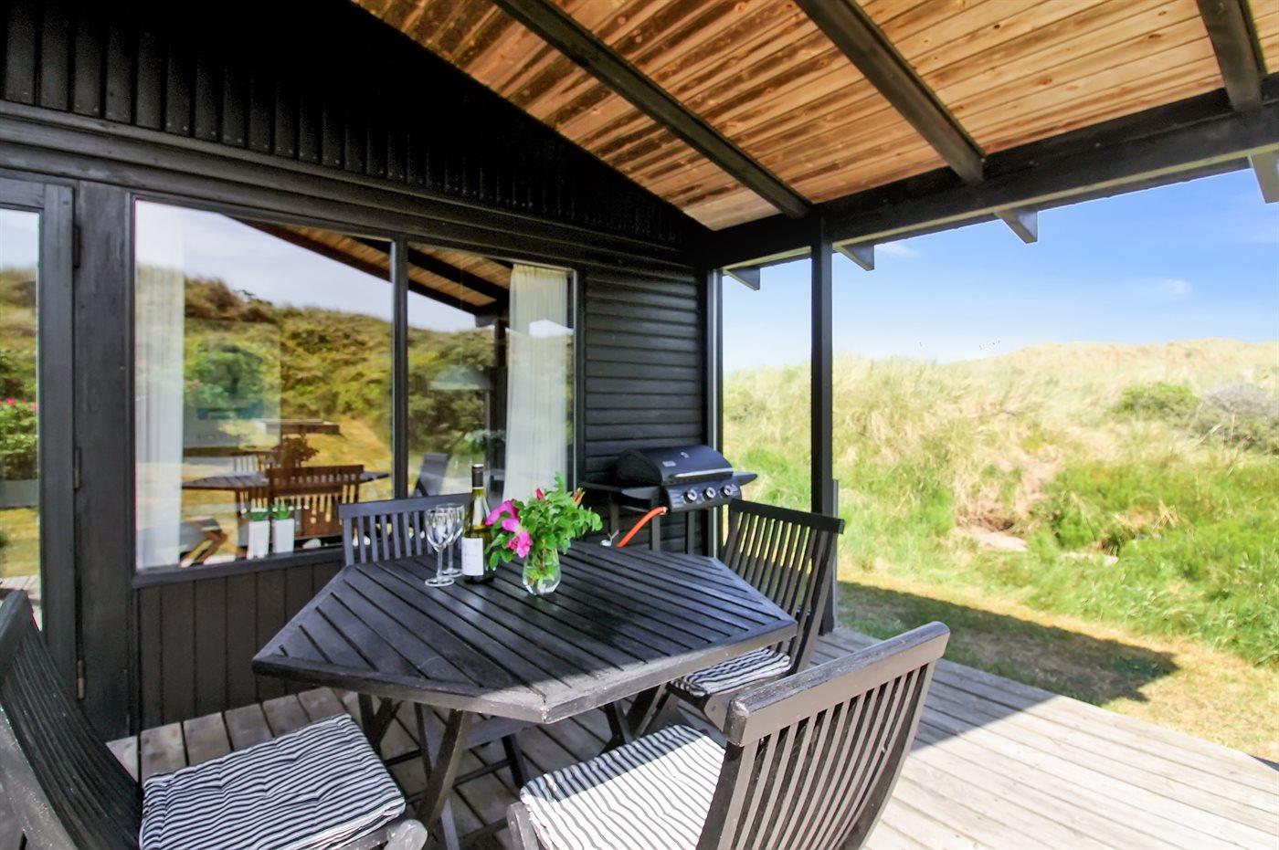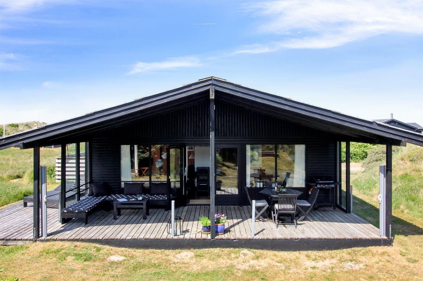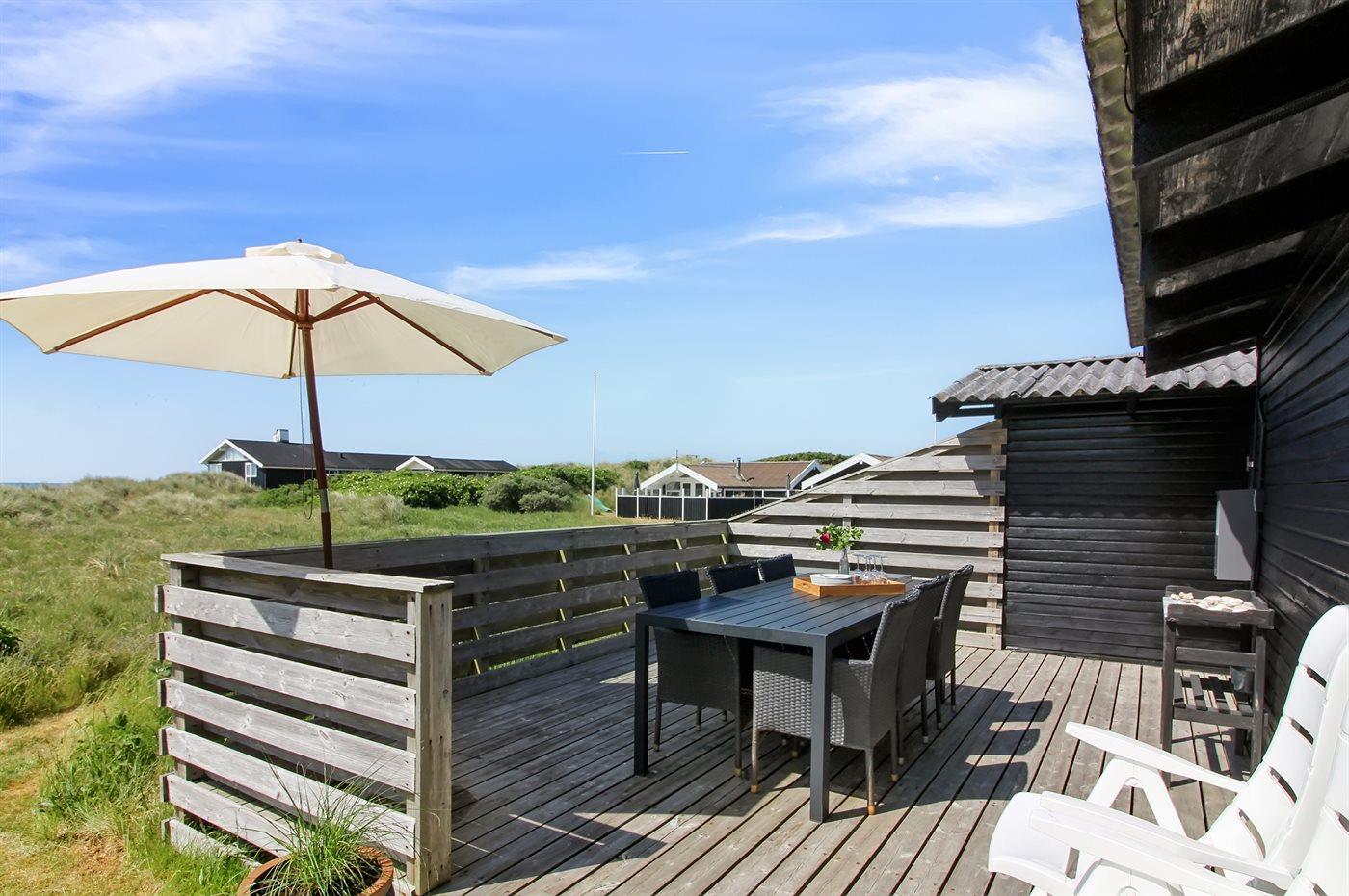 Hyggeligt sommerhus i Grønhøj med havudsigt og skøn stor terrasse på klitgrund tæt ved Vesterhavet.