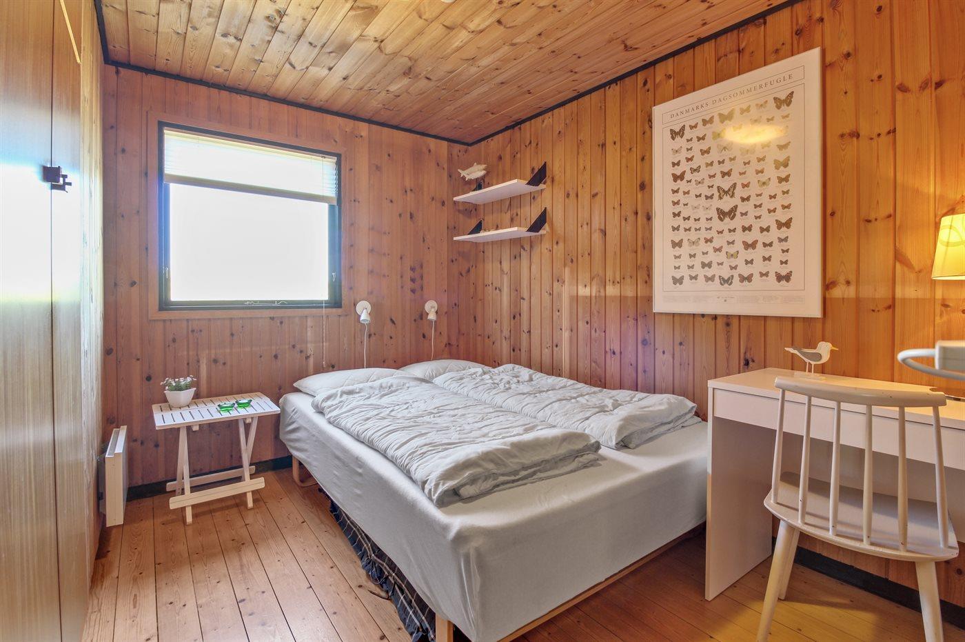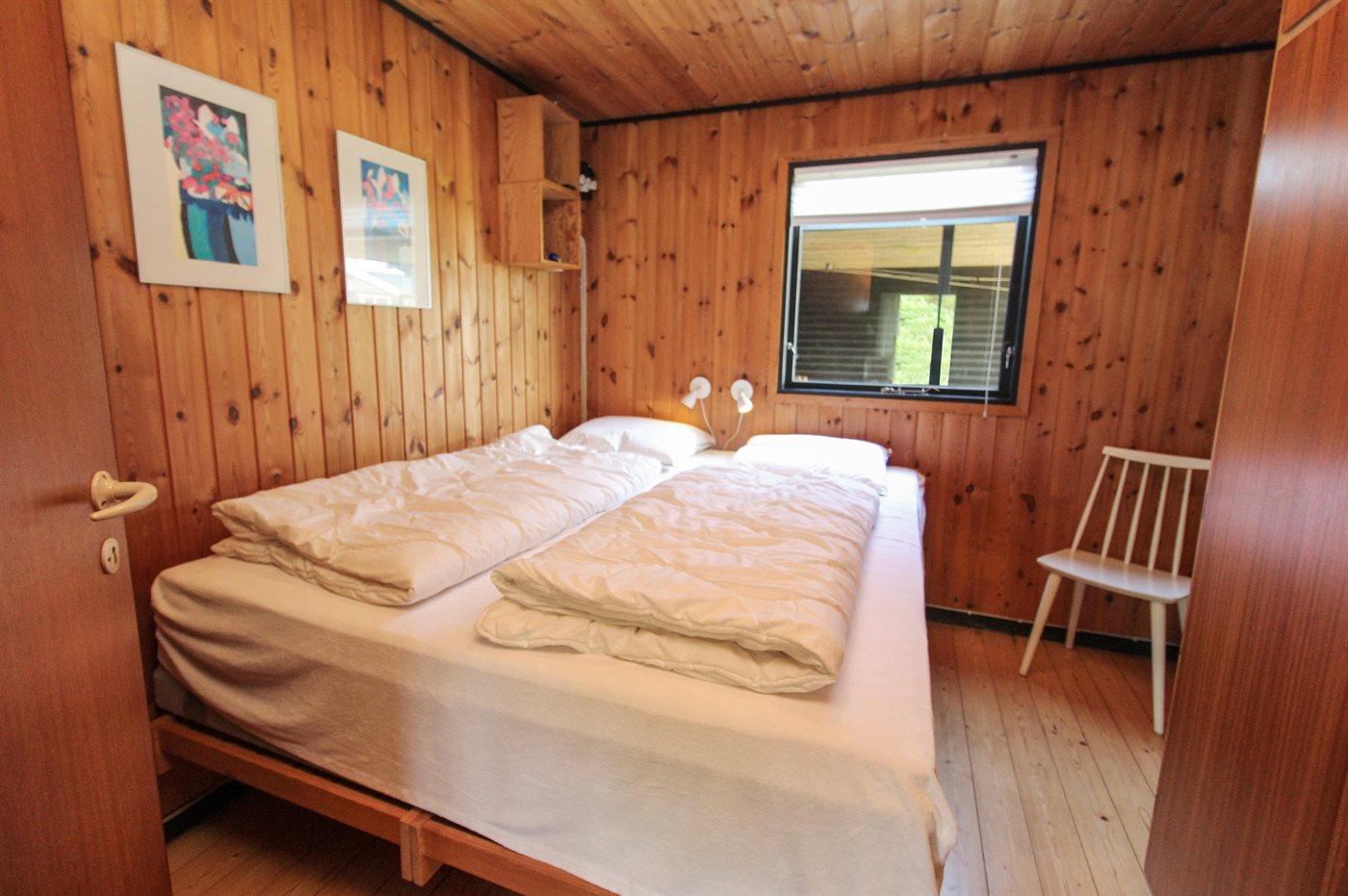 Der er i alt 3 soveværelser. Sovepladserne fordeler sig på: 4 sovepladser i dobbeltsenge. 2 sovepladser i køjeseng. Derudover er der 1 stk. barneseng.