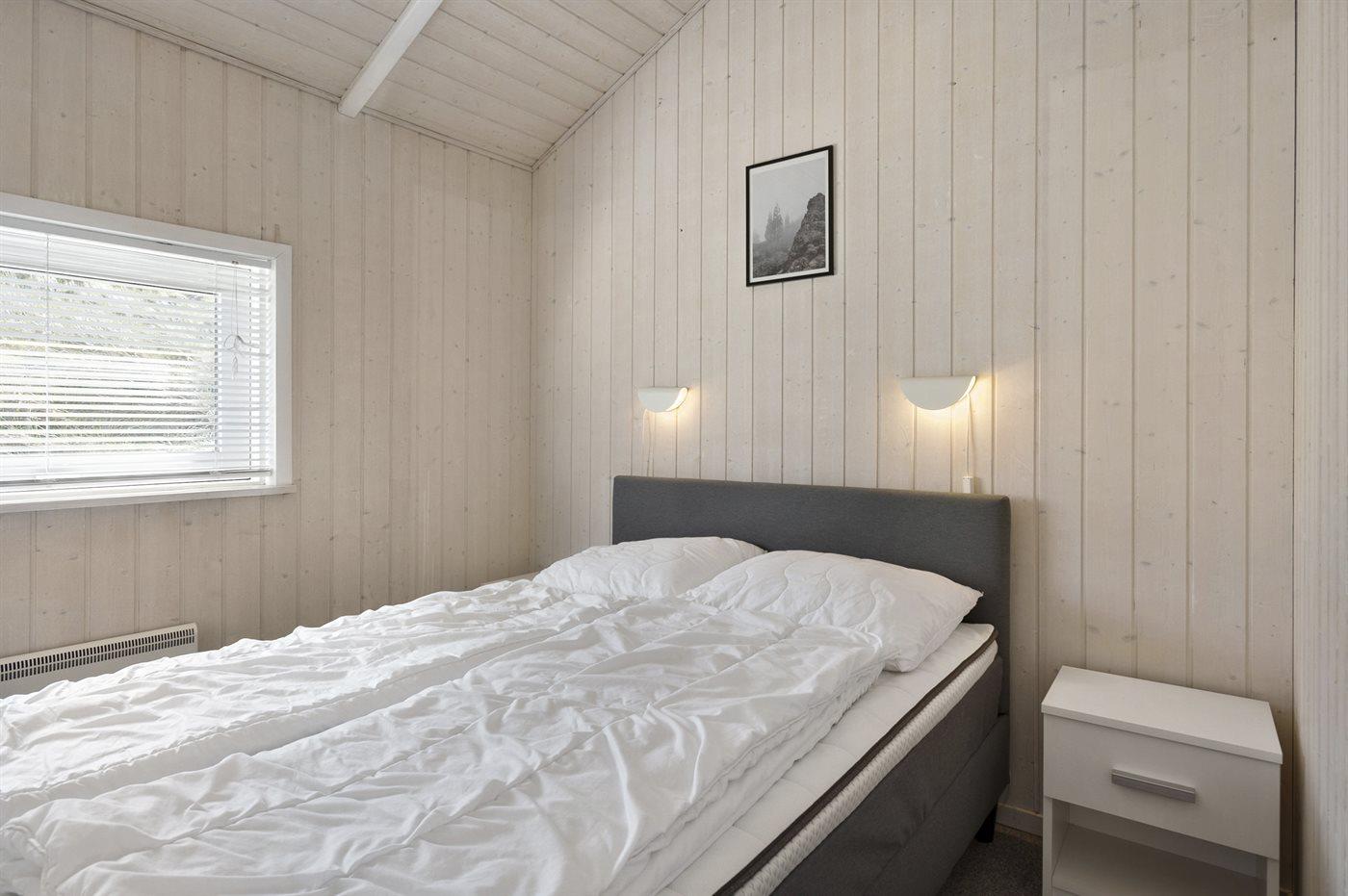 Der er i alt 3 soveværelser. Sovepladserne fordeler sig på: 4 sovepladser i dobbeltsenge. 2 sovepladser i enkeltsenge. 2 sovepladser i alkove. Derudover er der 1 stk. barneseng.