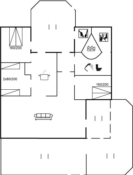 Der er i alt 3 soveværelser. Sovepladserne fordeler sig på: 4 sovepladser i dobbeltsenge. 2 sovepladser i enkeltsenge. Derudover er der 1 stk. barneseng.