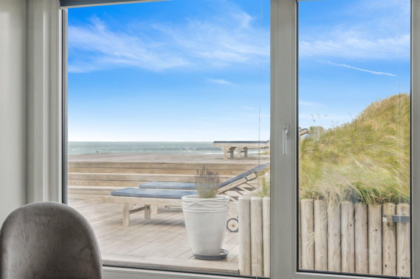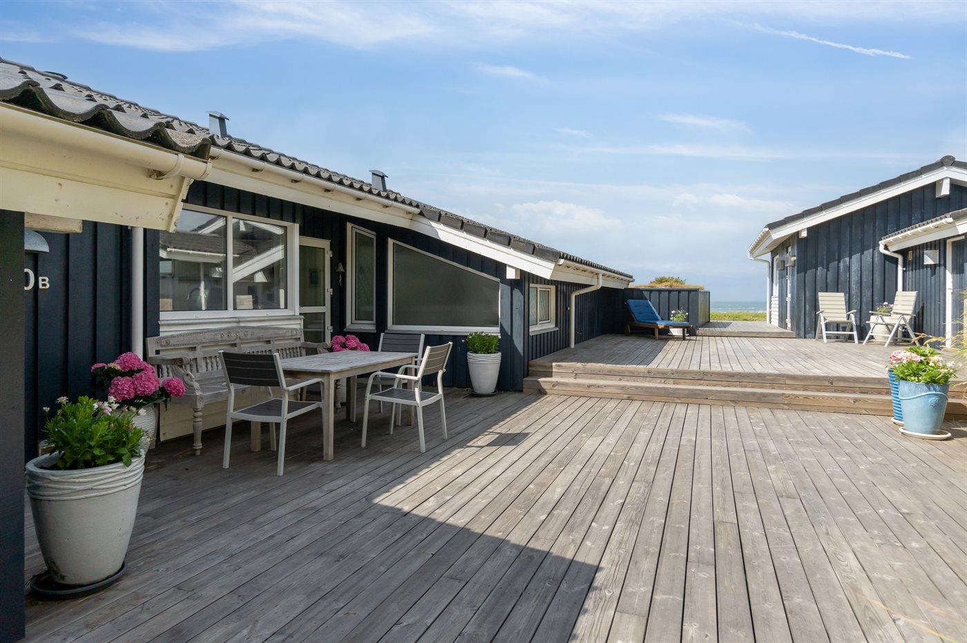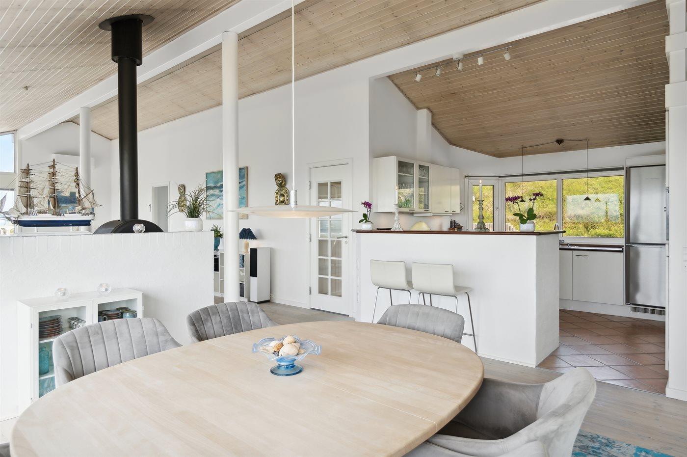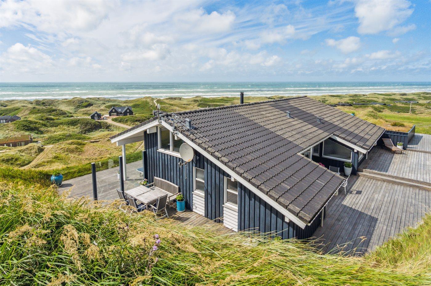 Flot og indbydende sommerhus med én af Danmarks bedste beliggenheder på toppen af Kettrup Bjerge og med 180° havudsigt fra såvel hus som grund. Huset ligger helt ugenert for enden af en blind vej på en skøn natur-/klitgrund. Huset er omgivet at et stort og dejligt terrasseareal af træ mod syd, vest, nord og øst - her kan I nyde solen og den fantastiske udsigt. Spiseafdeling med udgang til terrassen. Den smagfuldt møblerede opholdsstue på 70 kvm. er med store vinduespartier og har fantastisk 180° havudsigt.
