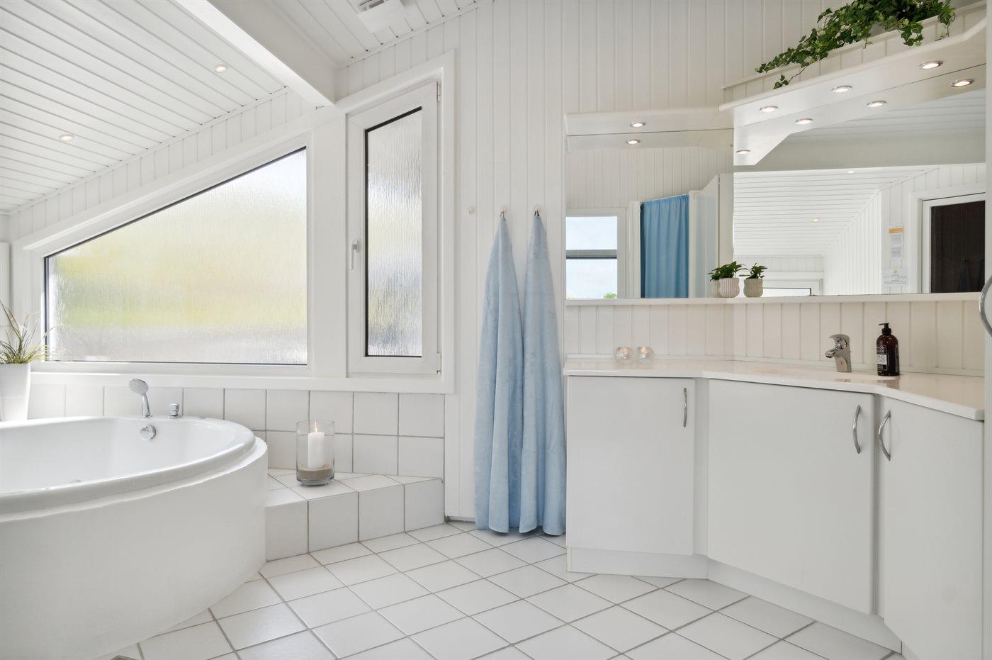 Der er 2 badeværelser med bruseniche og 2 toiletter. Der er gulvvarme på 2 badeværelser. I saunaen er der mulighed for afslapning.