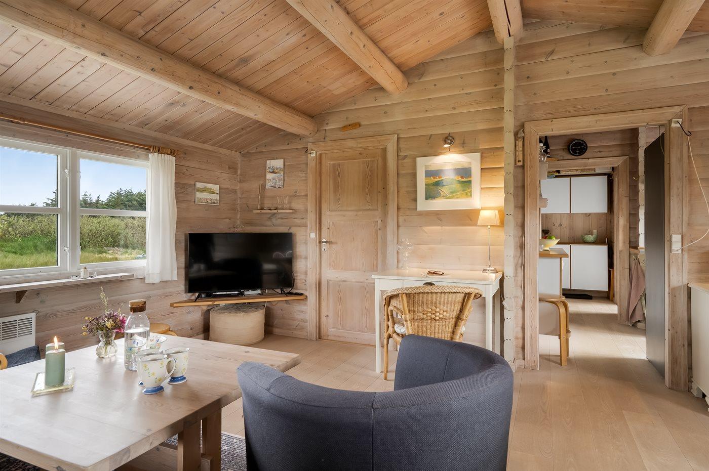 Hyggeligt bjælkehus i Løkken med stor grund og tæt på havet, perfekt til hundeelskere og naturinteresserede.