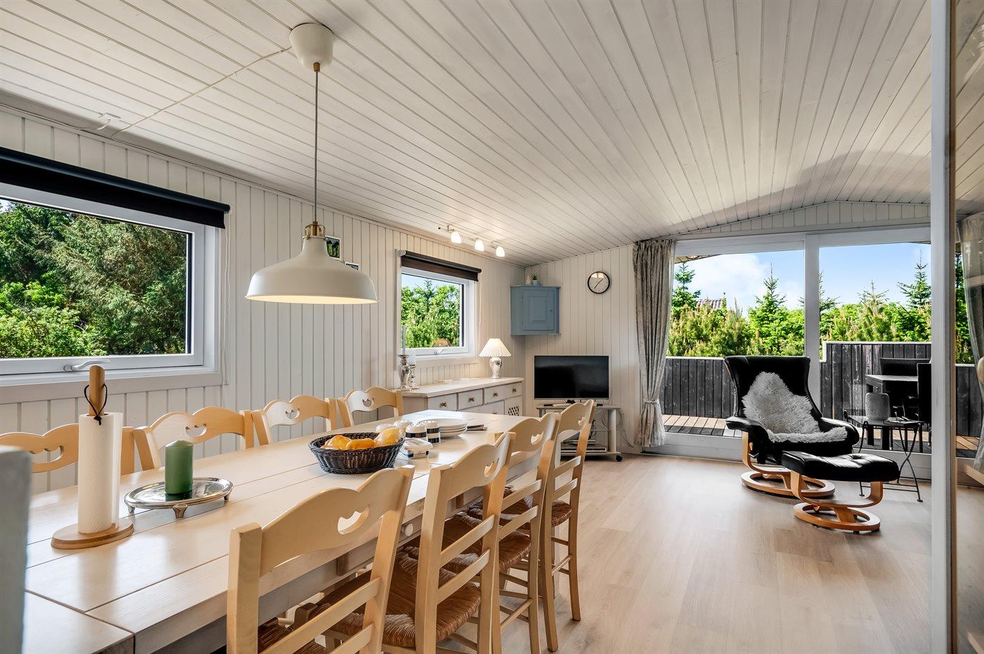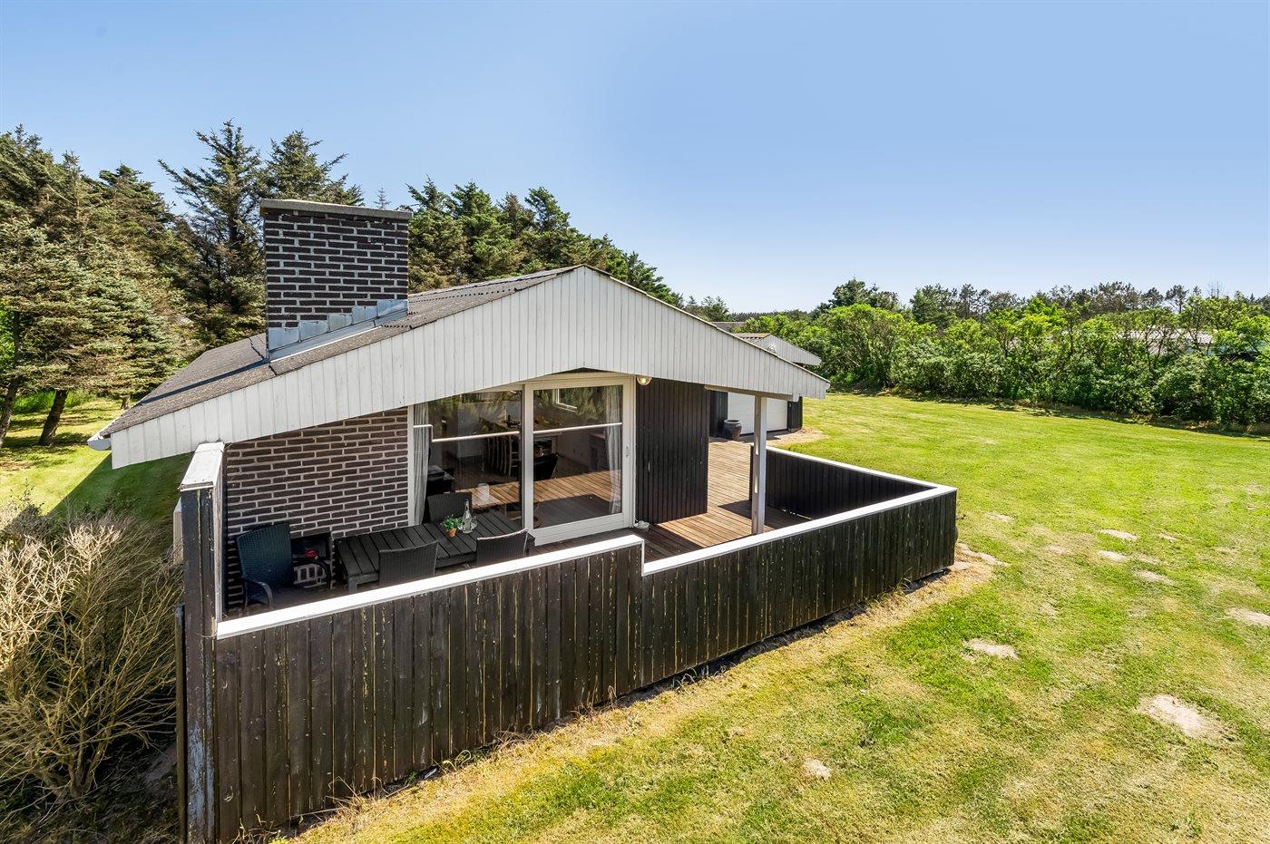 Pænt sommerhus beliggende på en lukket grund for enden af blind vej nær stranden og Vesterhavet. Til huset hører et anneks, hvor 2 af sovepladserne befinder sig.