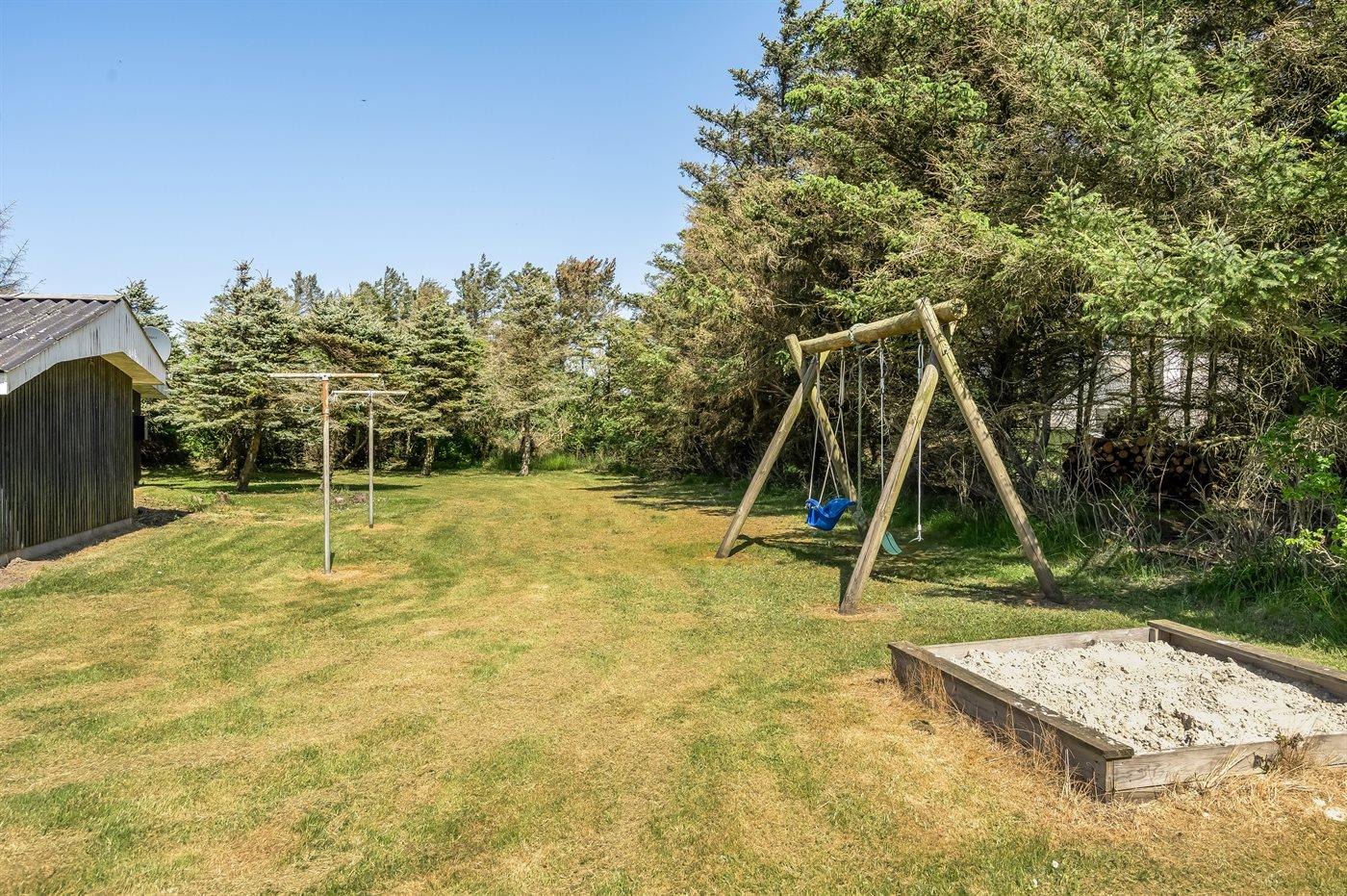 Ferieboligen er beliggende på en 1291 m² stor naturgrund. Der er 300 m til havet. Nærmeste forretning er beliggende i en afstand af 200 m. Til ferieboligen hører 30 m² terrasseareal. Desuden er der 8 m² overdækket terrasse. Gynge. Sandkasse. Der er garage til rådighed.