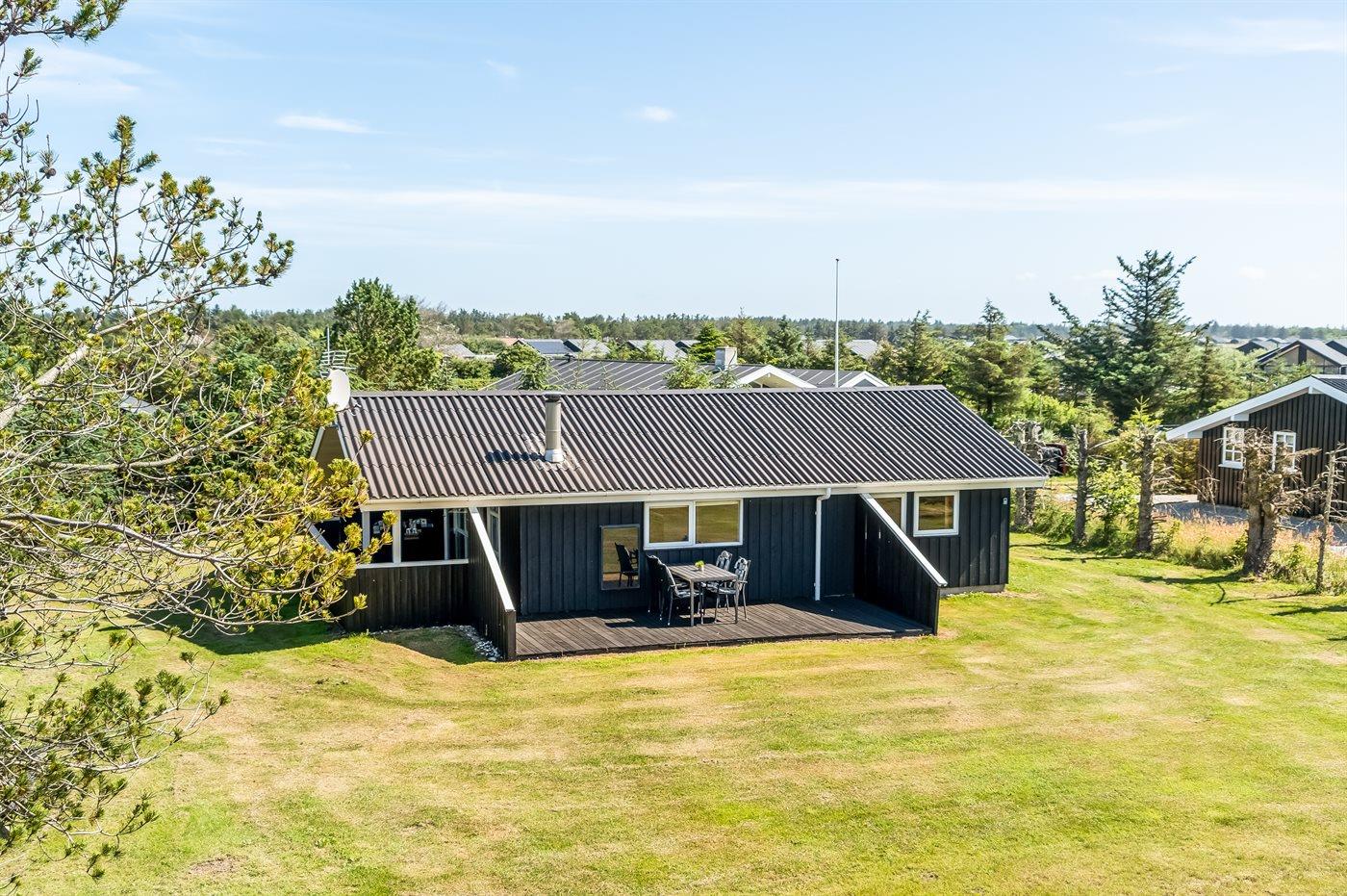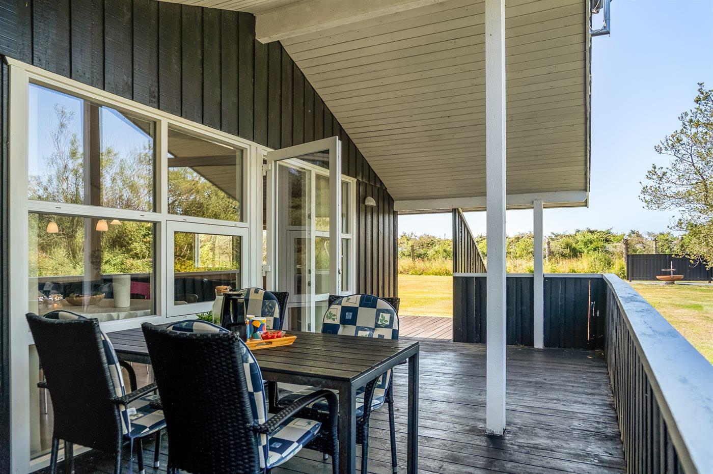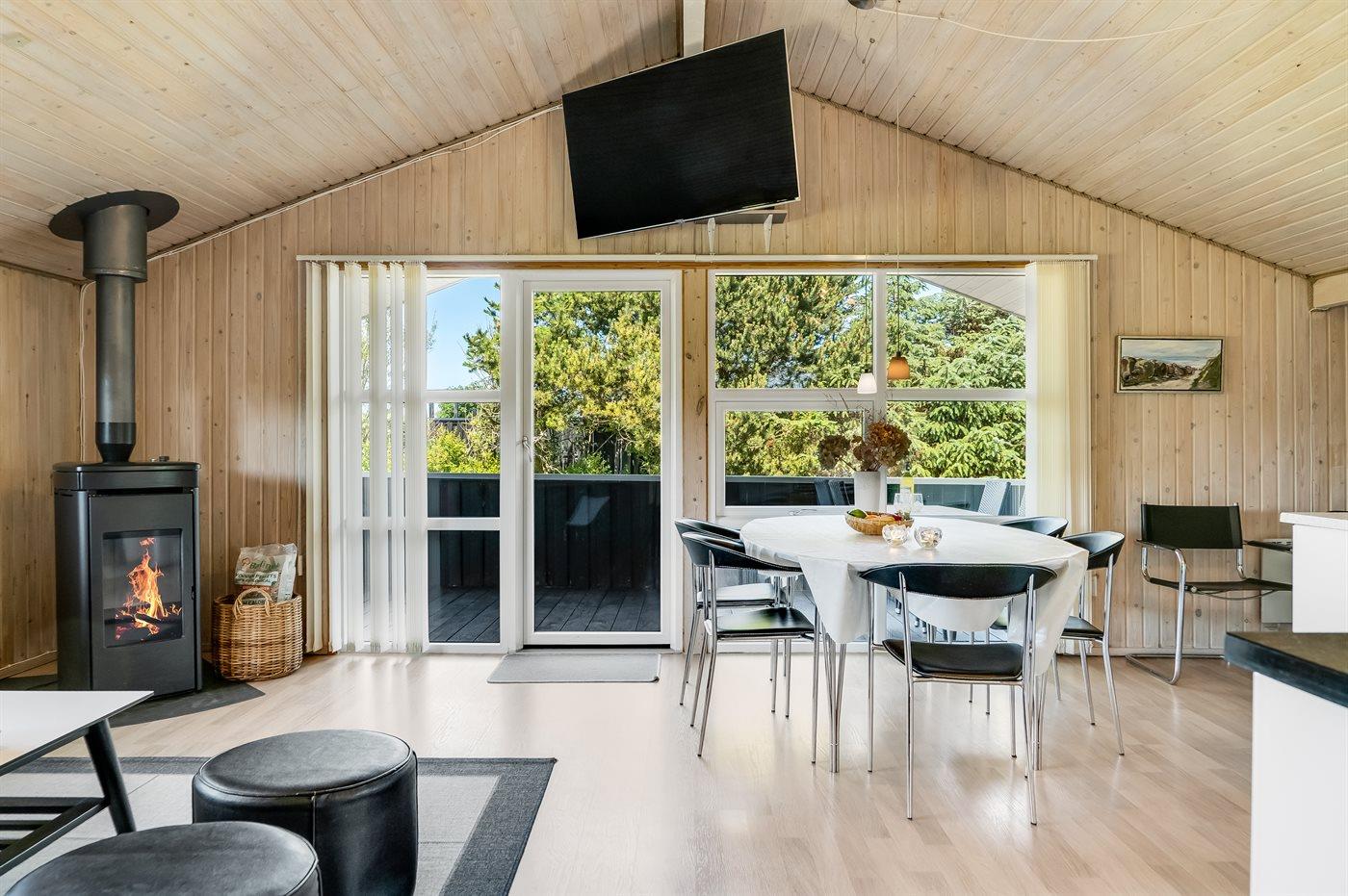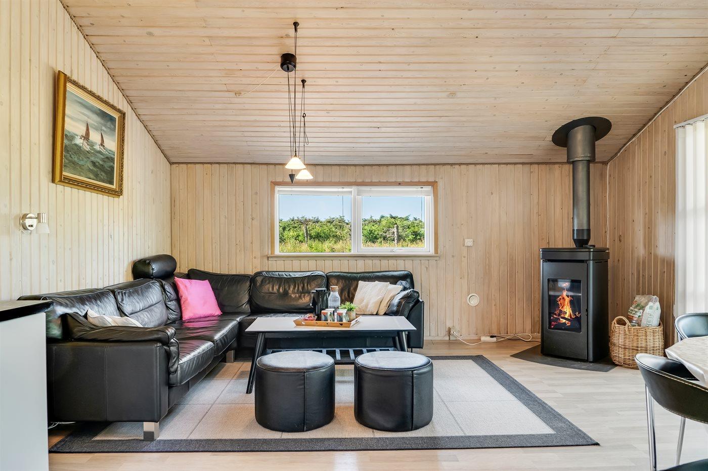 Hyggeligt sommerhus nær Løkken med brændeovn, terrasse og gåafstand til sandstrand og natur.