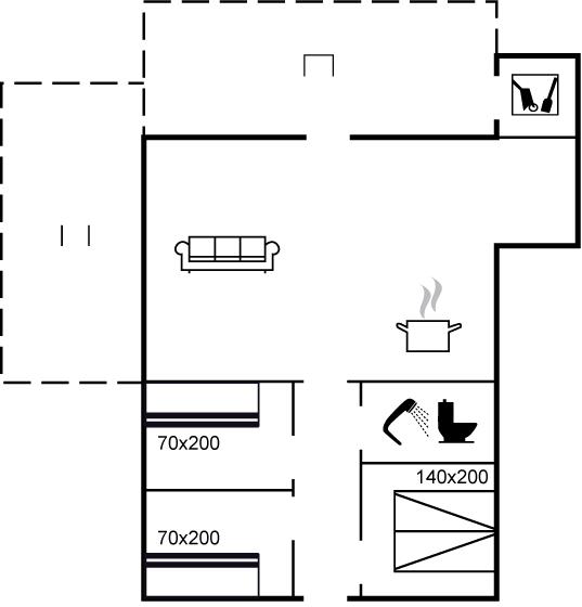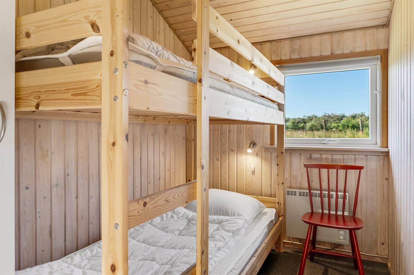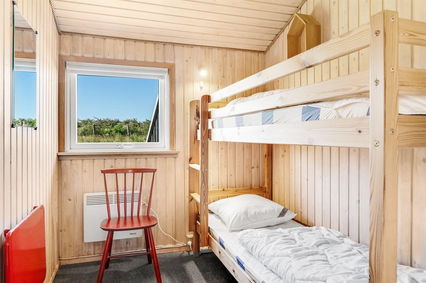Der er i alt 3 soveværelser. Sovepladserne fordeler sig på: 2 sovepladser i dobbeltseng. 4 sovepladser i køjesenge.