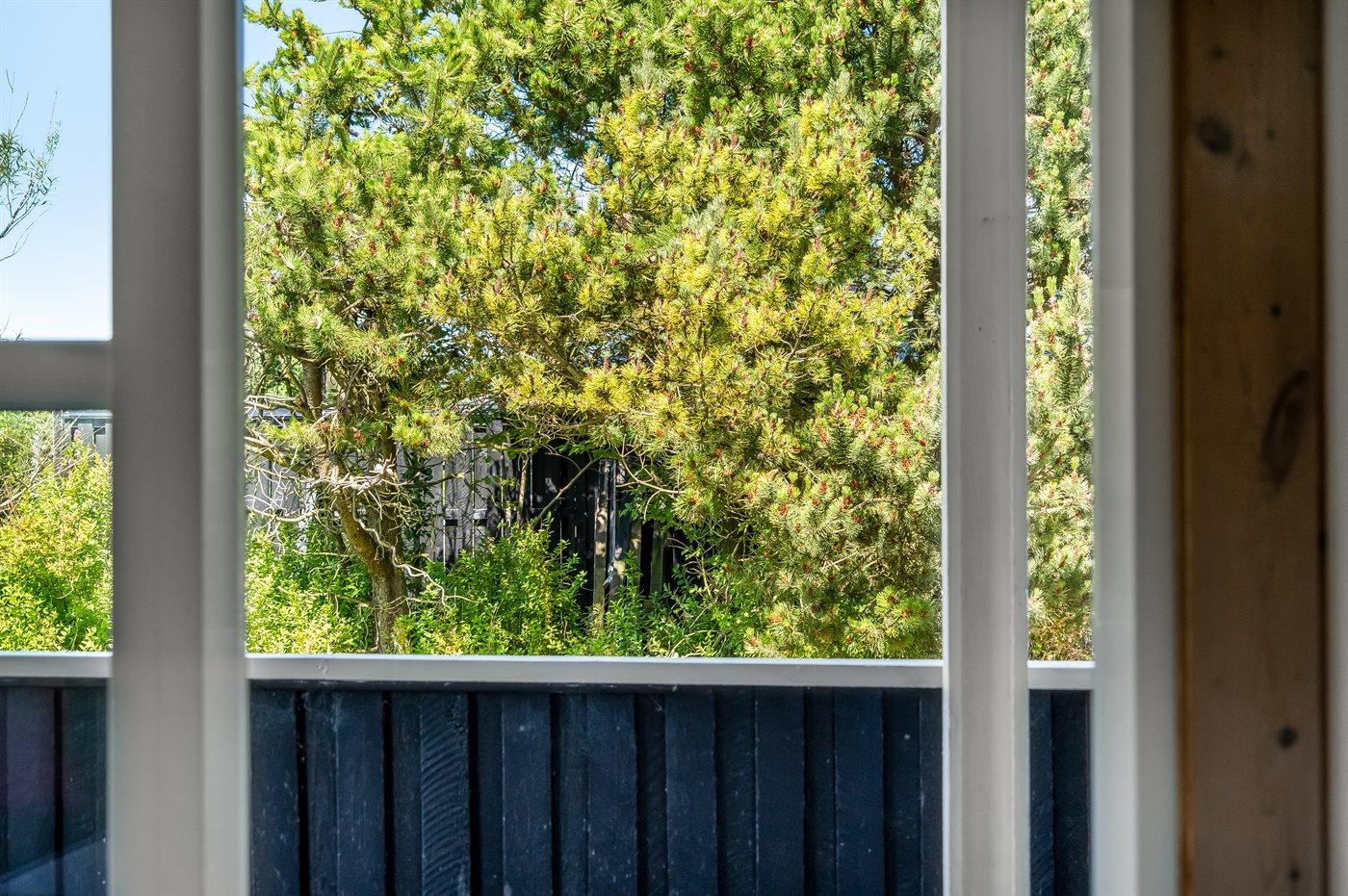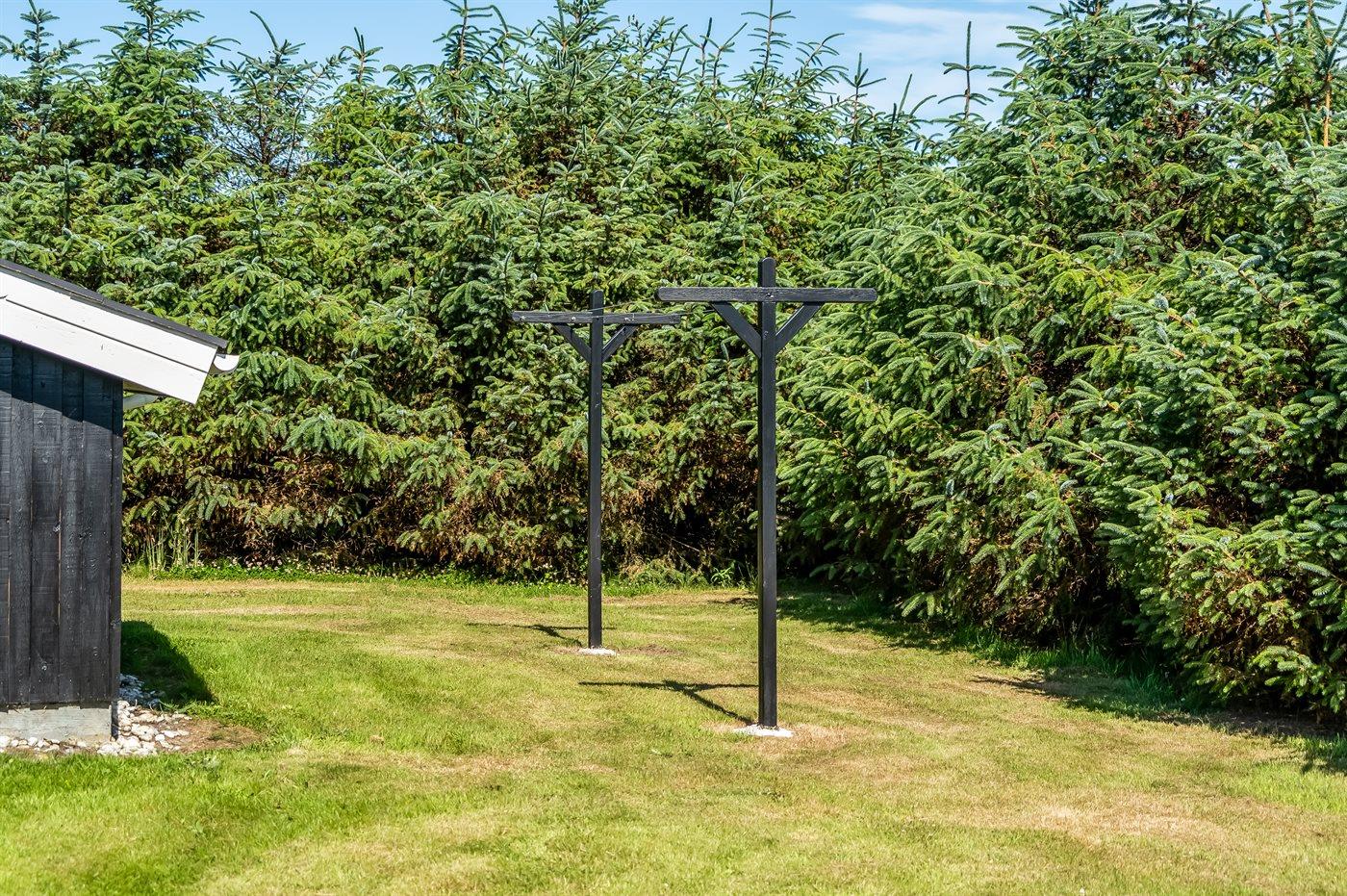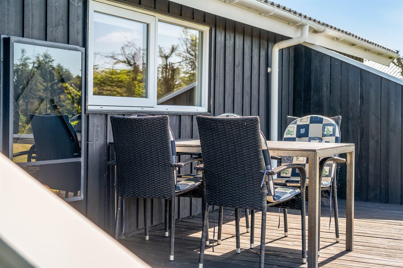 Ferieboligen er beliggende på en 1100 m² stor naturgrund. Der er 1000 m til havet. Nærmeste forretning er beliggende i en afstand af 650 m. Til ferieboligen hører 15 m² terrasseareal. Desuden er der 15 m² overdækket terrasse. Gynge. Parkering ved ferieboligen.