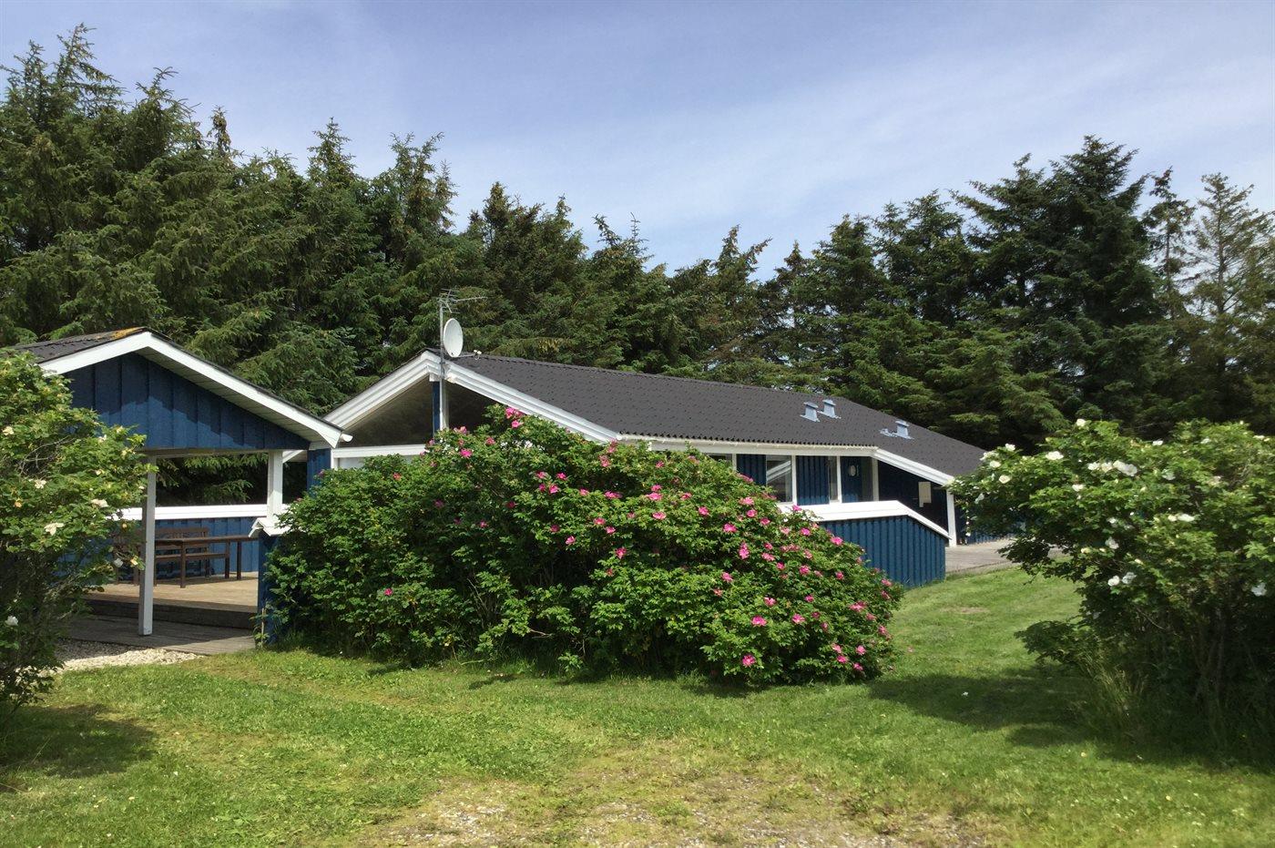 Ferieboligen er beliggende på en 1400 m² stor naturgrund. Der er 600 m til havet. Nærmeste forretning er beliggende i en afstand af 200 m. Til ferieboligen hører 100 m² terrasseareal. Der er redskabsrum. Gynge. Der er carport til rådighed. Parkering ved ferieboligen.