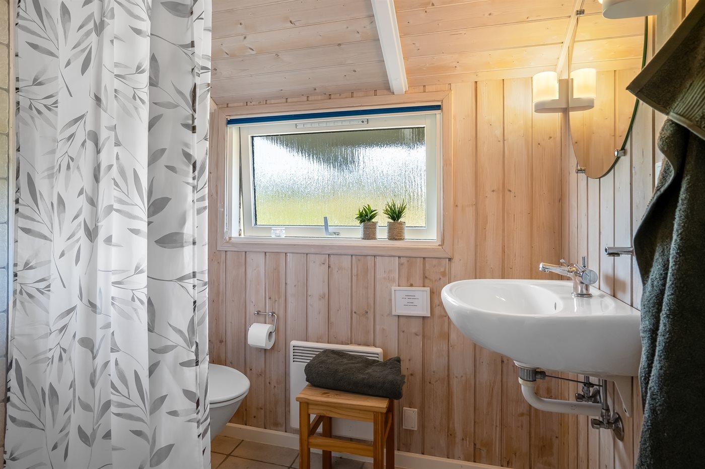 Der er 2 badeværelser med bruseniche og 2 toiletter. Der er gulvvarme på 2 badeværelser. I saunaen er der mulighed for afslapning.