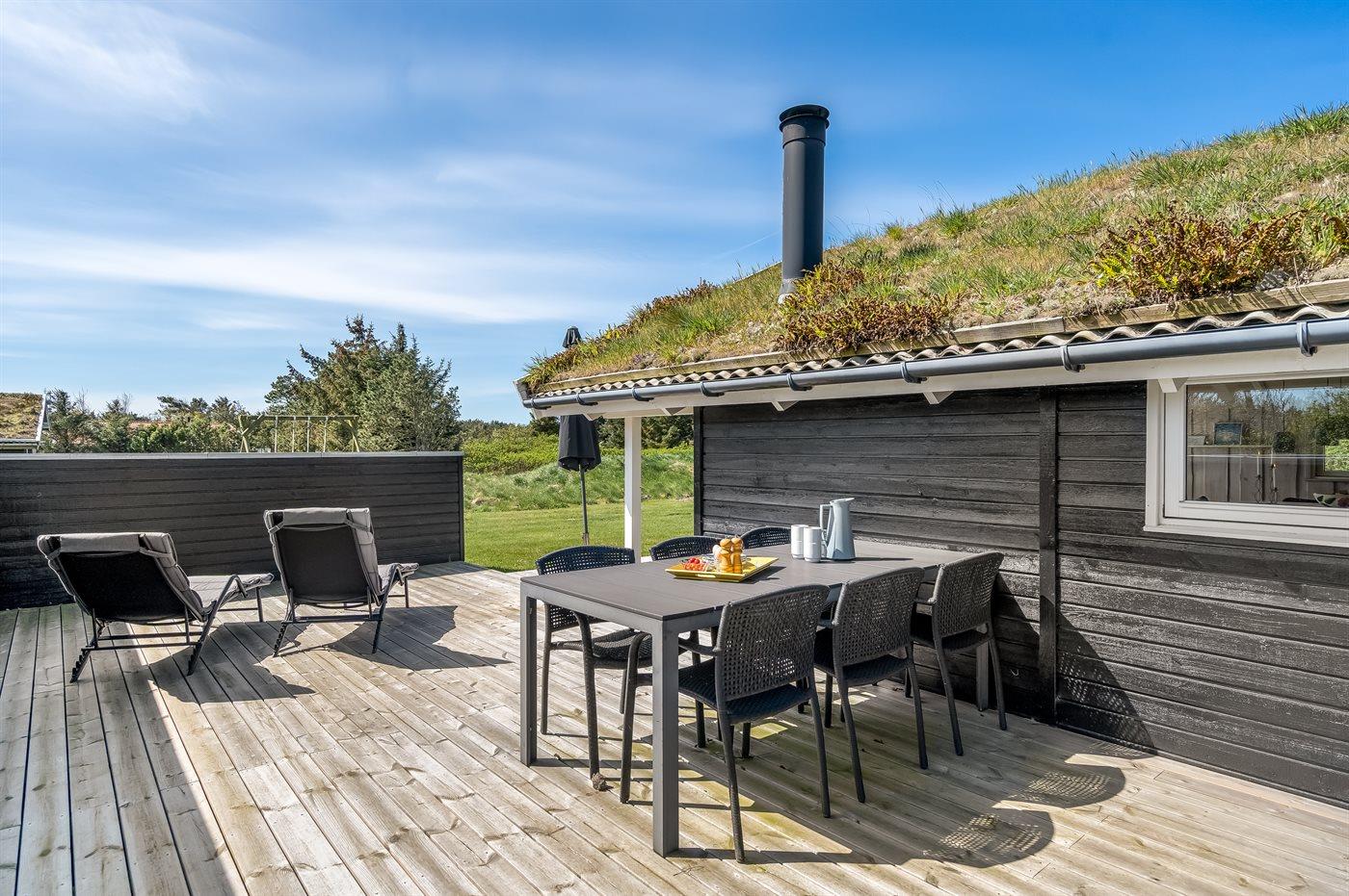 Skønt sommerhus i naturskønt område nær Vesterhavet med spa, sauna og stor grund til leg og afslapning.
