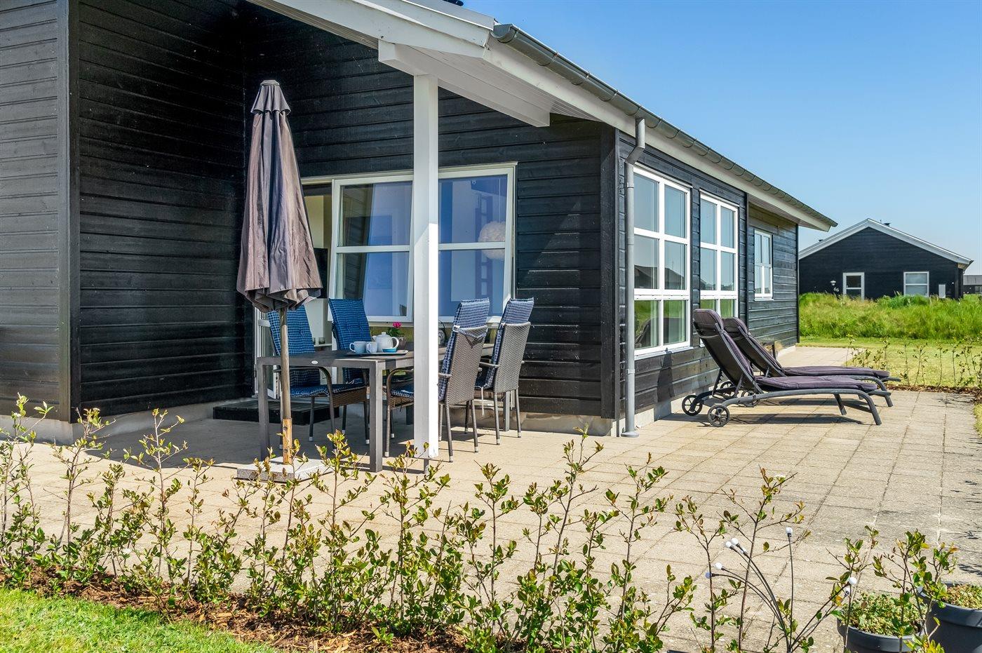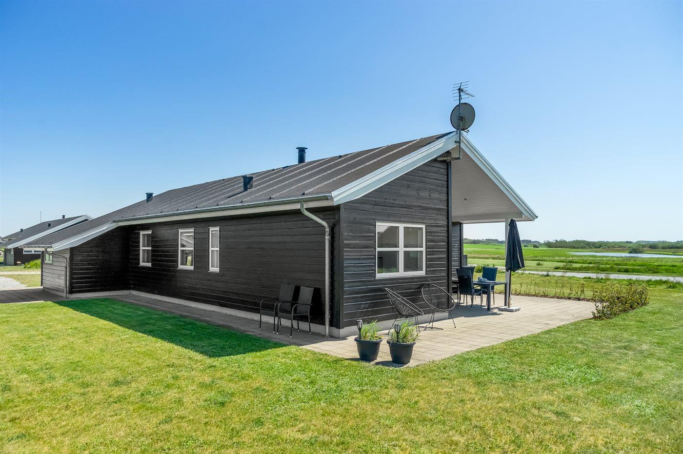 Sommerhuset er på 113 m2 og udlejes til 6 personer. Det er tilladt at medbringe 2 husdyr. Til huset hører 20 m2 åbent terrasseareal samt 8 m2 overdækket terrasse. Endvidere er der carport samt redskabsrum til rådighed.