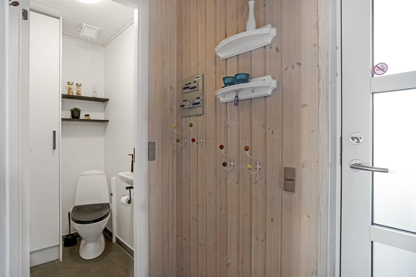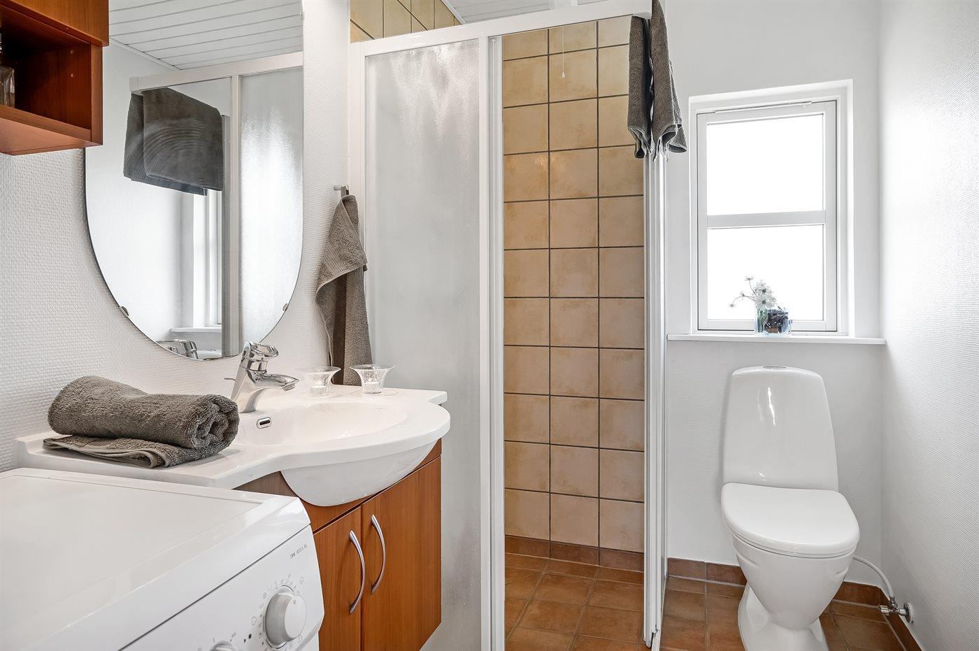 Der er 1 badeværelse med bruseniche og 2 toiletter, heraf 1 gæstetoilet. Der er gulvvarme på 1 badeværelse. Der er gulvvarme på gæstetoilettet.