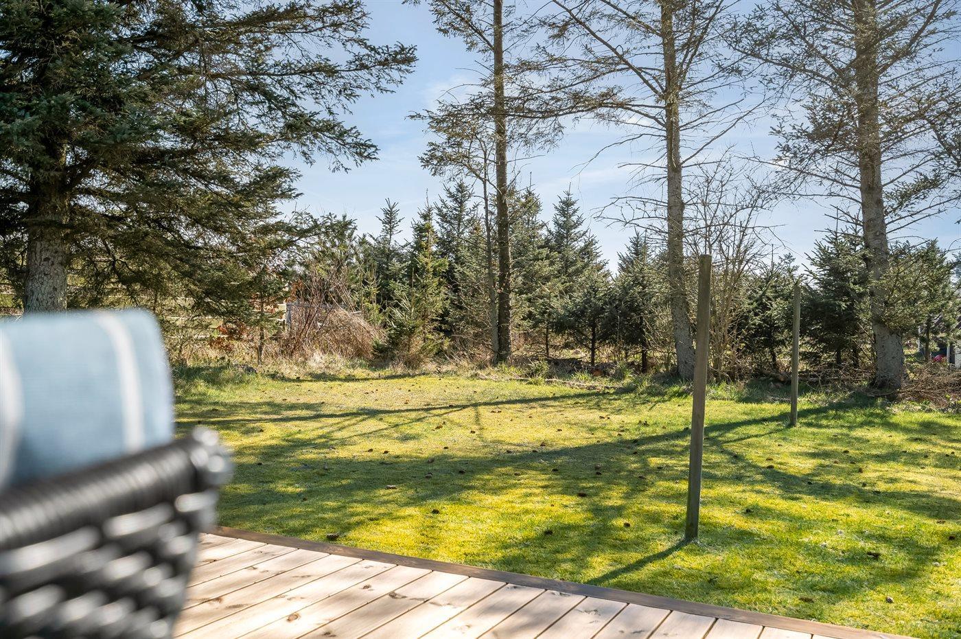 Ferieboligen er beliggende på en 1226 m² stor naturgrund. Der er 750 m til havet. Nærmeste forretning er beliggende i en afstand af 1200 m. Til ferieboligen hører 20 m² terrasseareal. Desuden er der 30 m² overdækket terrasse. Gynge. Sandkasse. Rutchebane. Parkering ved ferieboligen.