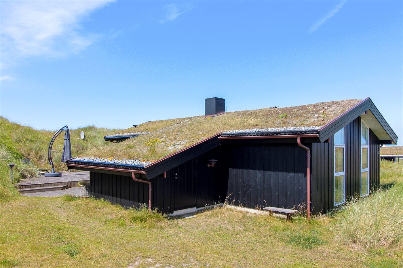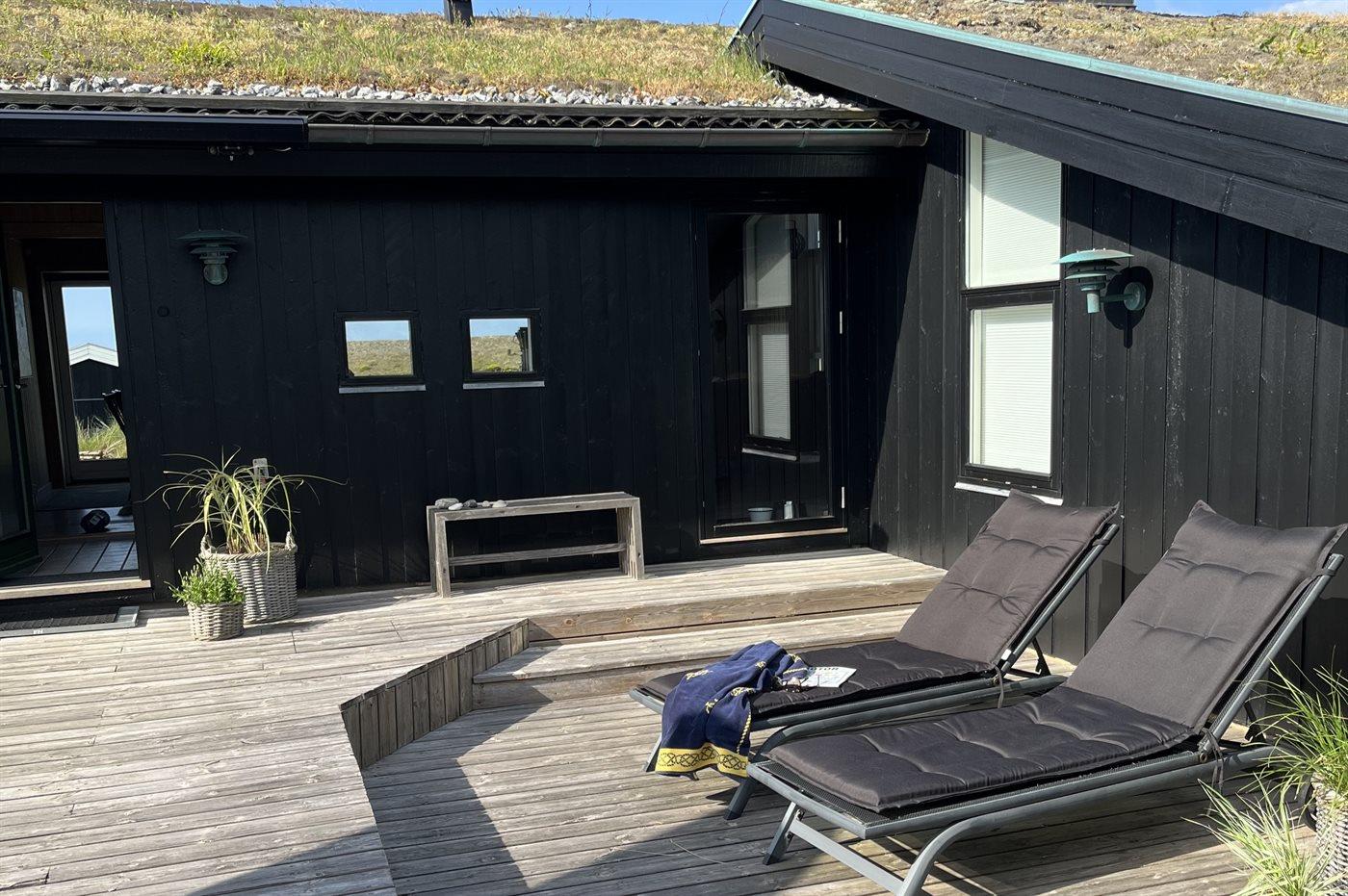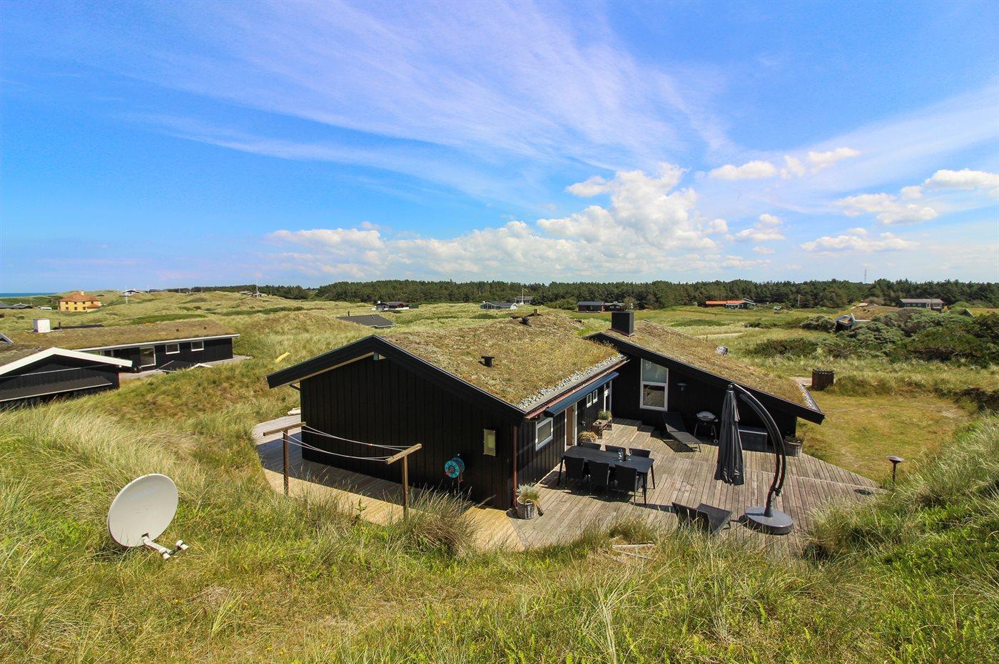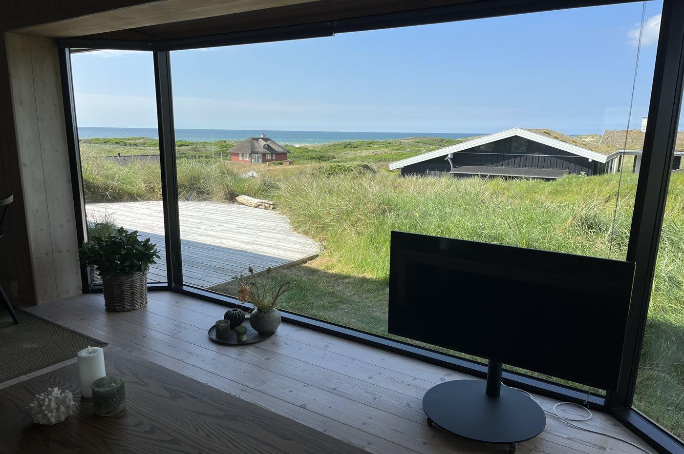 Flot feriehus med havudsigt og en placering midt i det kuperede klitlandskab. Huset er omgivet af klitter på de 2 sider og med fantastisk udsigt til Vesterhavet fra husets stue og soveværelse. Efter blot 5 minutter på gåben står du på en af Danmarks smukkeste badestrande. Et yderst attraktivt område der, med et utal af strandstier, indbyder til familietraveture i klitterne.
