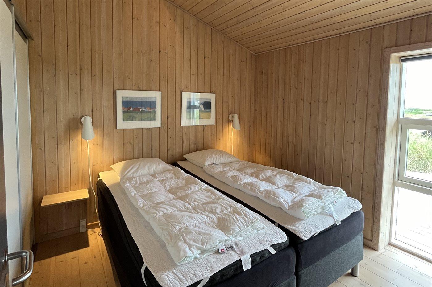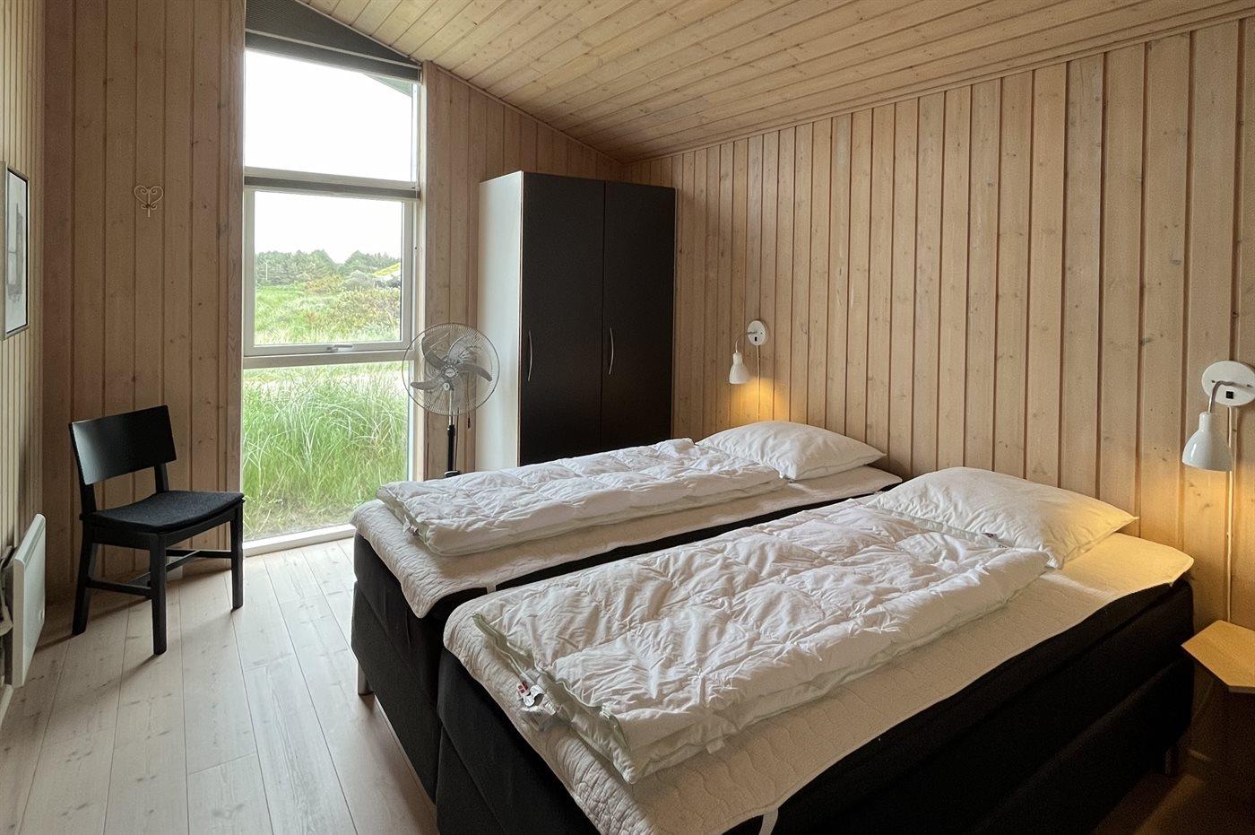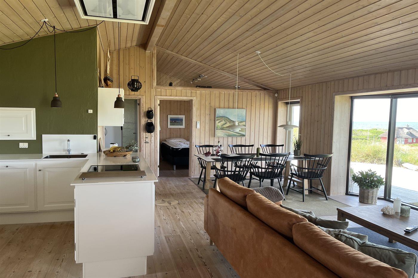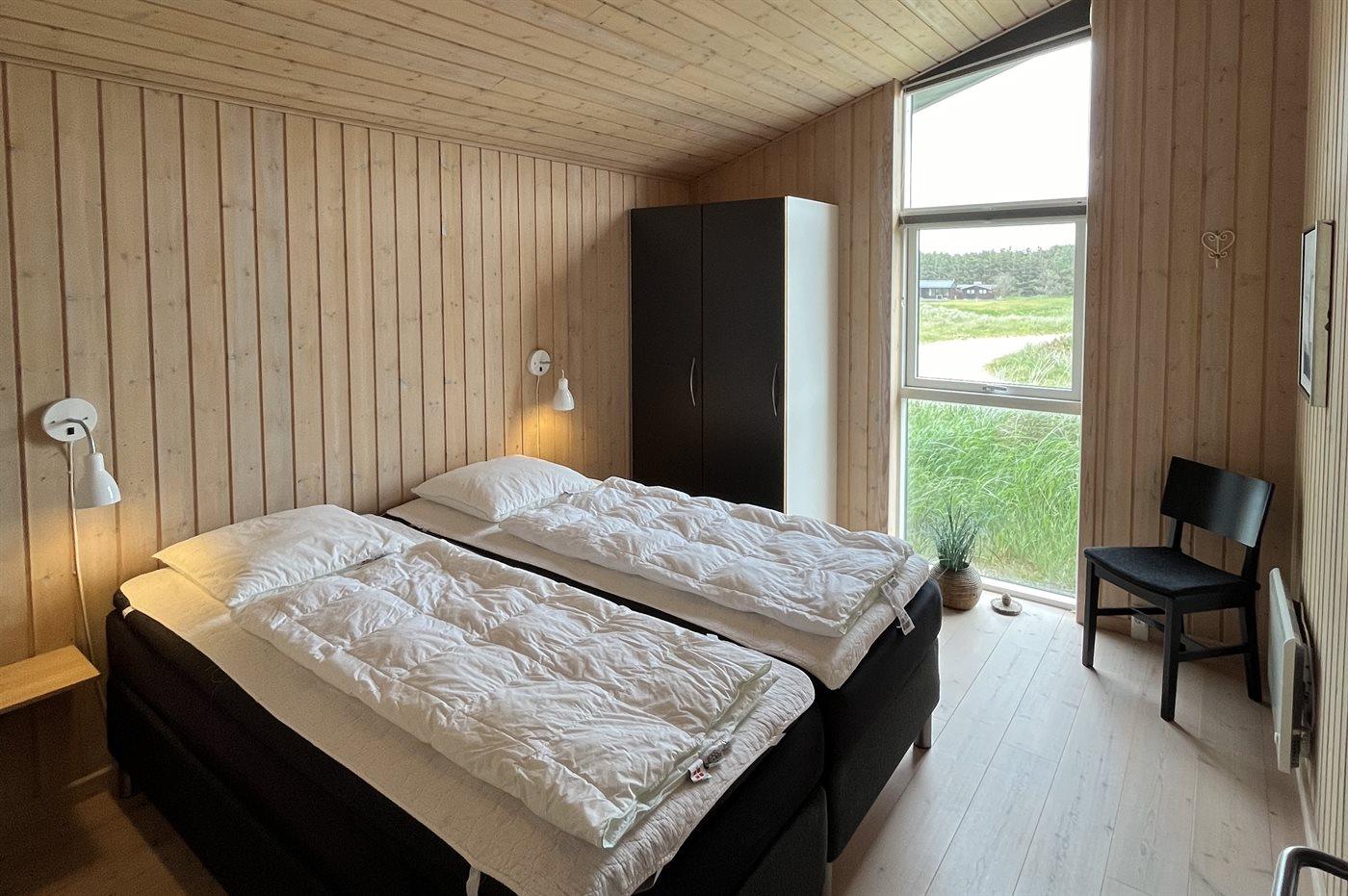 Flot feriehus med havudsigt og en placering midt i det kuperede klitlandskab. Huset er omgivet af klitter på de 2 sider og med fantastisk udsigt til Vesterhavet fra husets stue og soveværelse. Efter blot 5 minutter på gåben står du på en af Danmarks smukkeste badestrande. Et yderst attraktivt område der, med et utal af strandstier, indbyder til familietraveture i klitterne.