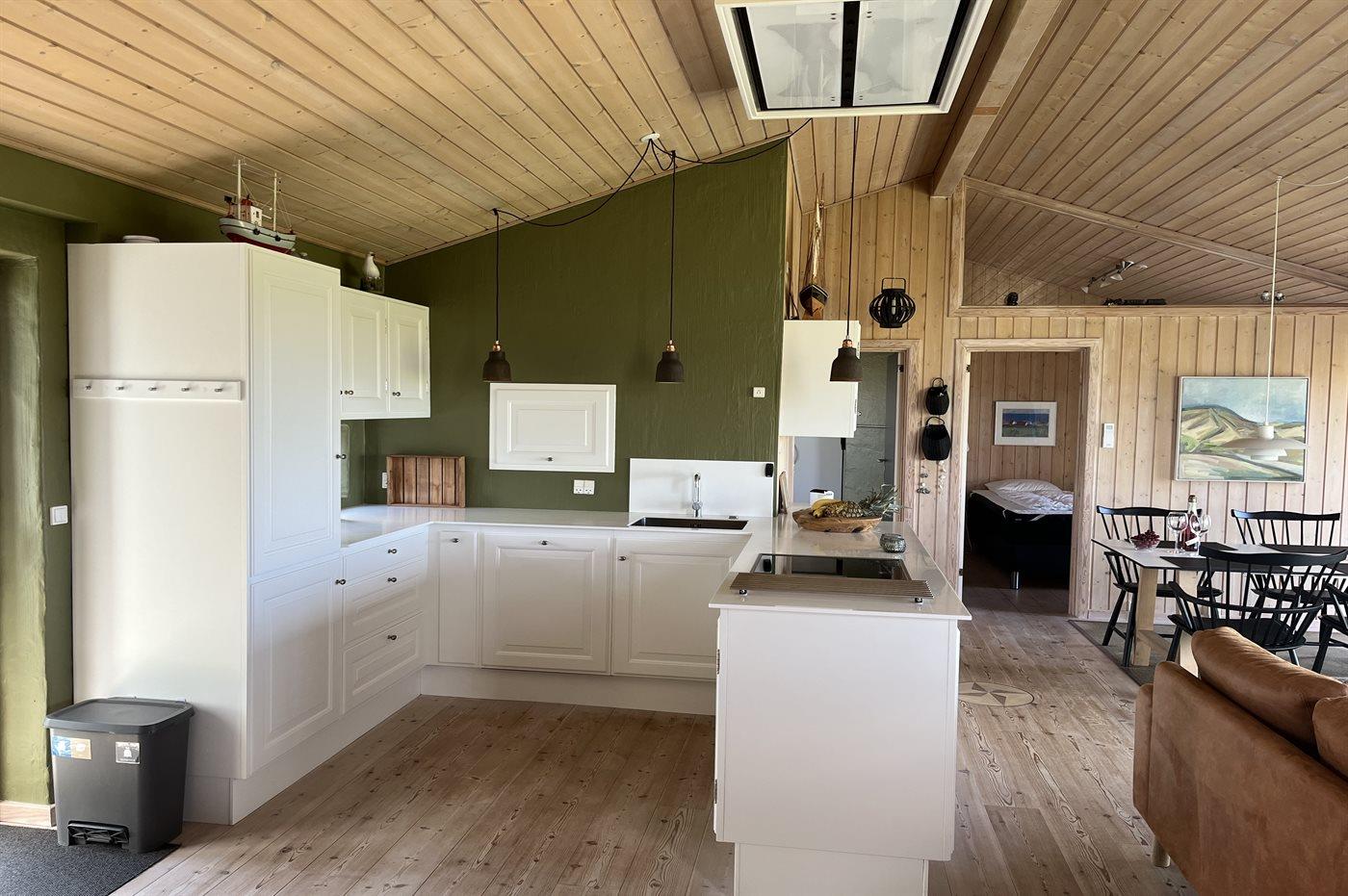 Køkkenet er udstyret med 1 køleskab. Der er 4 keramiske kogeplader, varmluftovn, mikrobølgeovn samt opvaskemaskine.