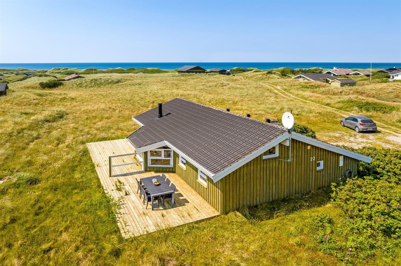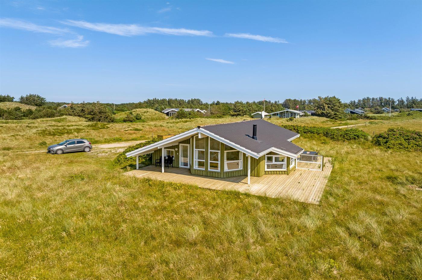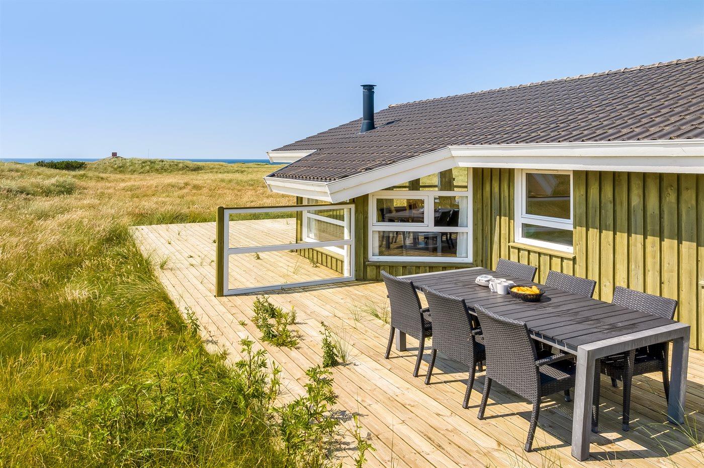 Lækkert sommerhus med havudsigt, spabad og sauna tæt på Vesterhavet i naturskønne omgivelser.