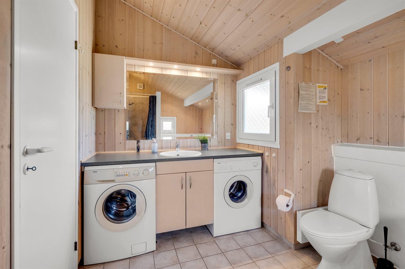 Der er 1 badeværelse med bruseniche og 2 toiletter, heraf 1 gæstetoilet. Der er gulvvarme på 1 badeværelse. I saunaen er der mulighed for afslapning.