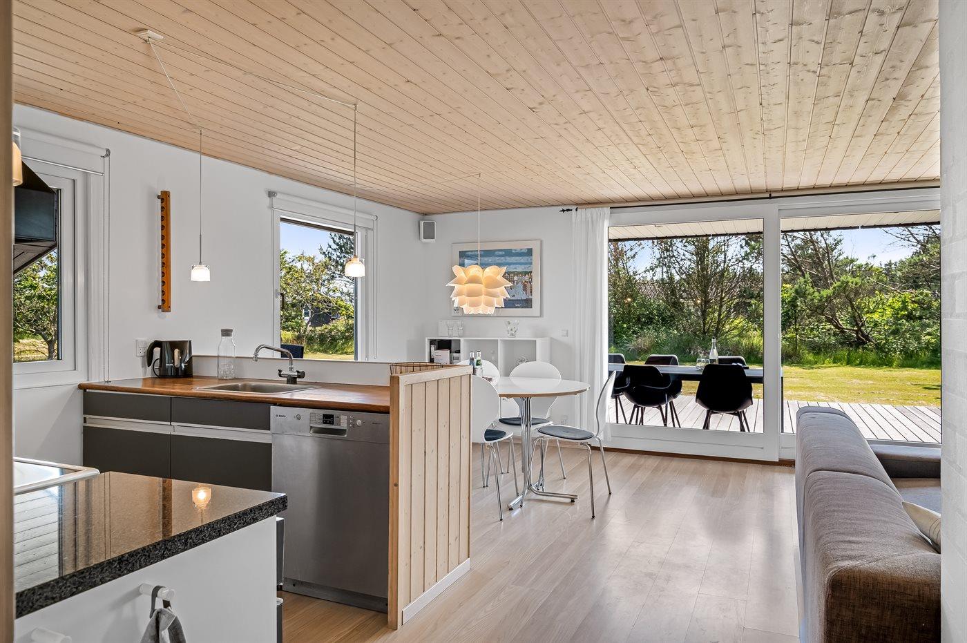 Køkkenet er udstyret med 1 køleskab. Der er 4 keramiske kogeplader, varmluftovn, mikrobølgeovn samt opvaskemaskine.