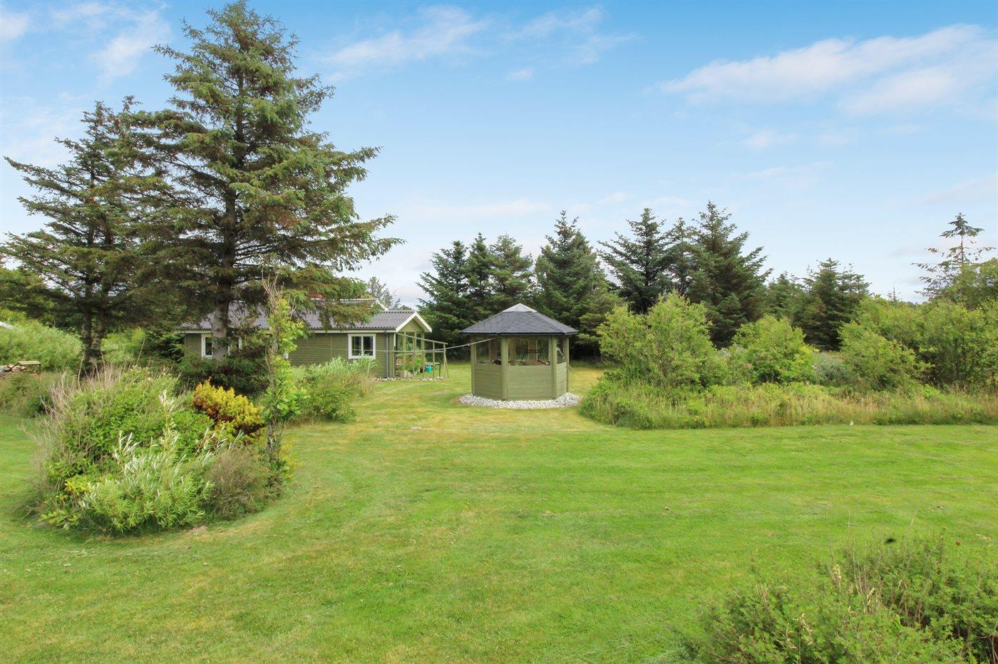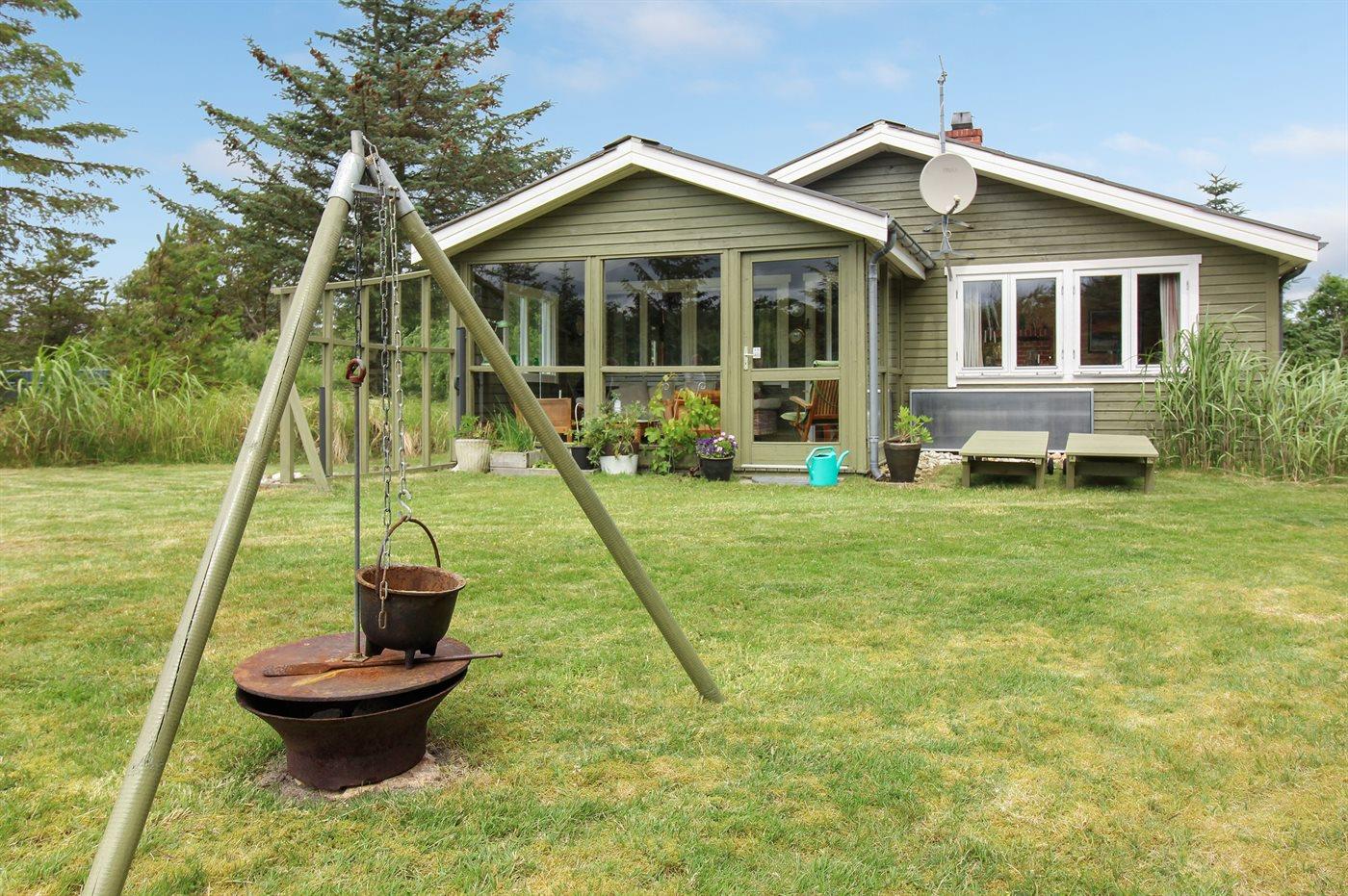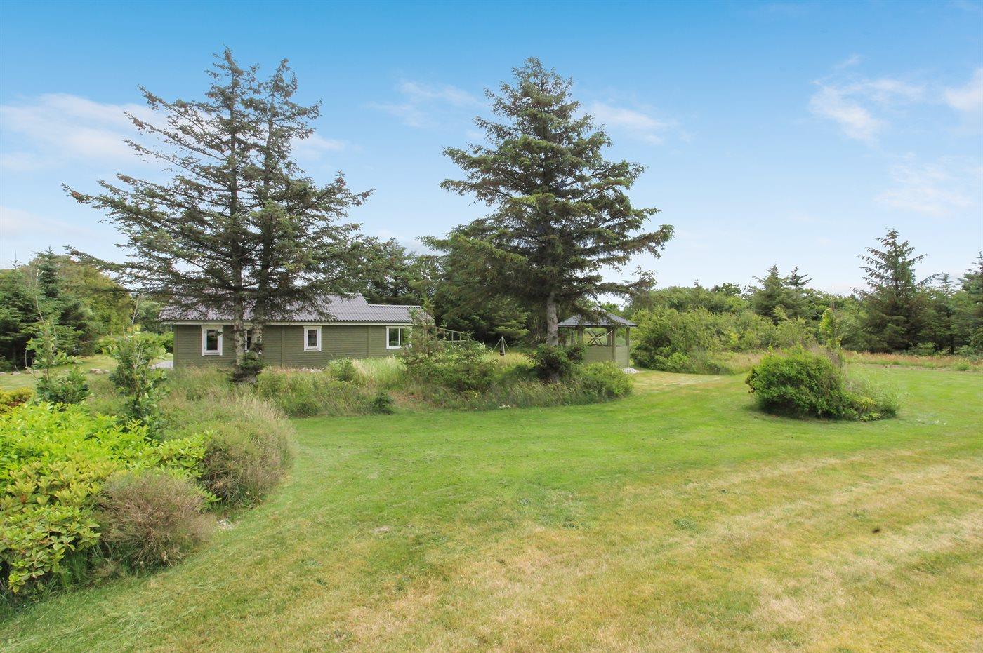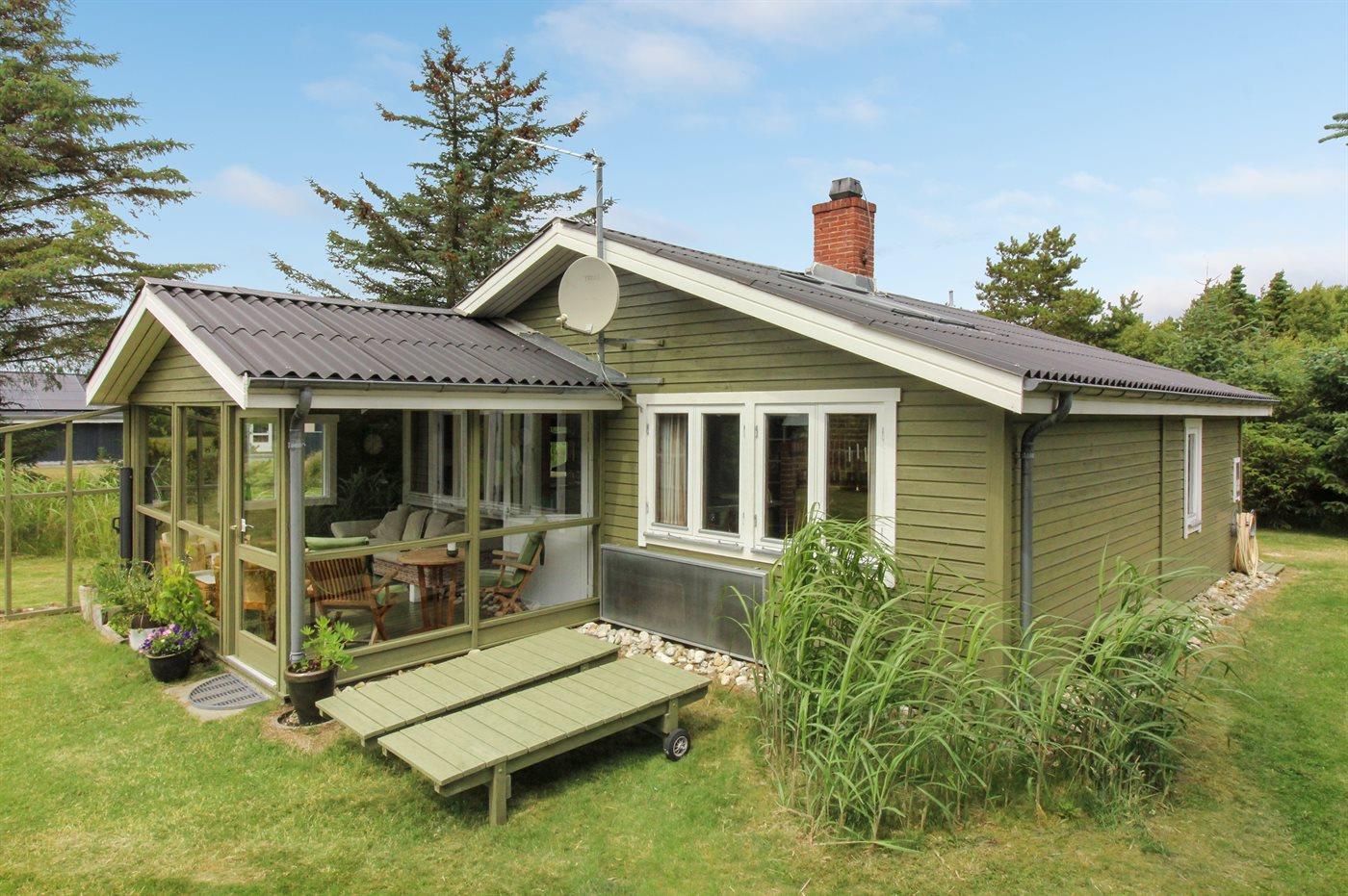 Ferieboligen er beliggende på en 1500 m² stor naturgrund. Der er 900 m til havet. Nærmeste forretning er beliggende i en afstand af 500 m. Ligeledes er der adgang til udestue. Der er redskabsrum. Parkering ved ferieboligen.