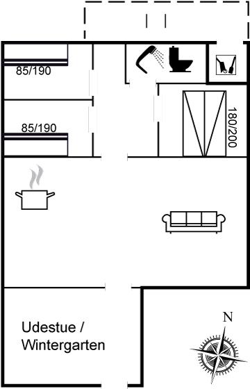 Der er i alt 3 soveværelser. Sovepladserne fordeler sig på: 2 sovepladser i dobbeltseng. 4 sovepladser i køjesenge.