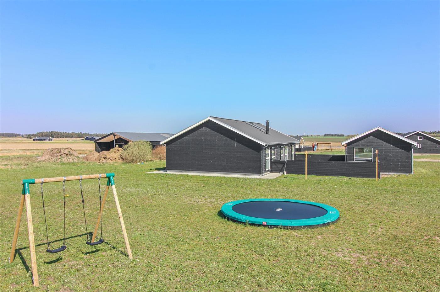 Ferieboligen er beliggende på en 2128 m² stor naturgrund. Der er 1500 m til havet. Nærmeste forretning er beliggende i en afstand af 1200 m. Der er en golfbane i en afstand af 5500 m. Til ferieboligen hører 70 m² lukket terrasse. Der er redskabsrum. Gynge. Trampolin. Der er installeret stik til opladning af elbil. Parkering ved ferieboligen.