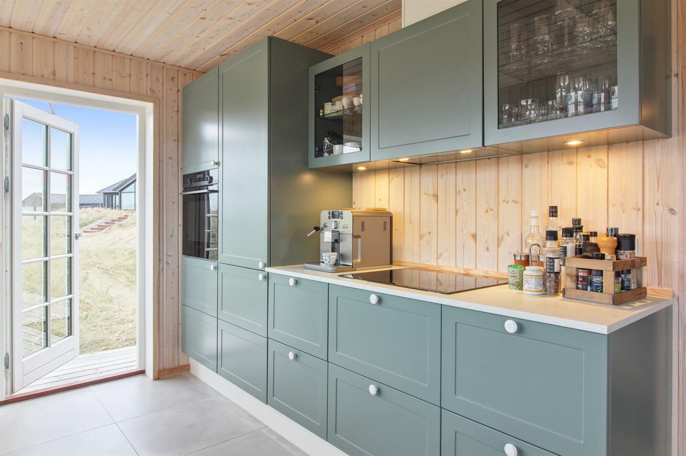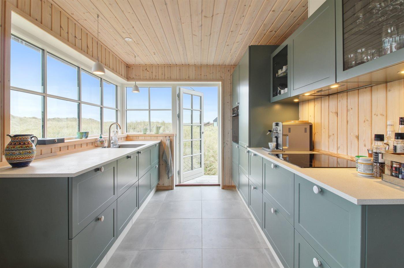 Køkkenet er udstyret med 1 køleskab. Der er 4 induktionskogeplader, varmluftovn, mikrobølgeovn samt opvaskemaskine.
