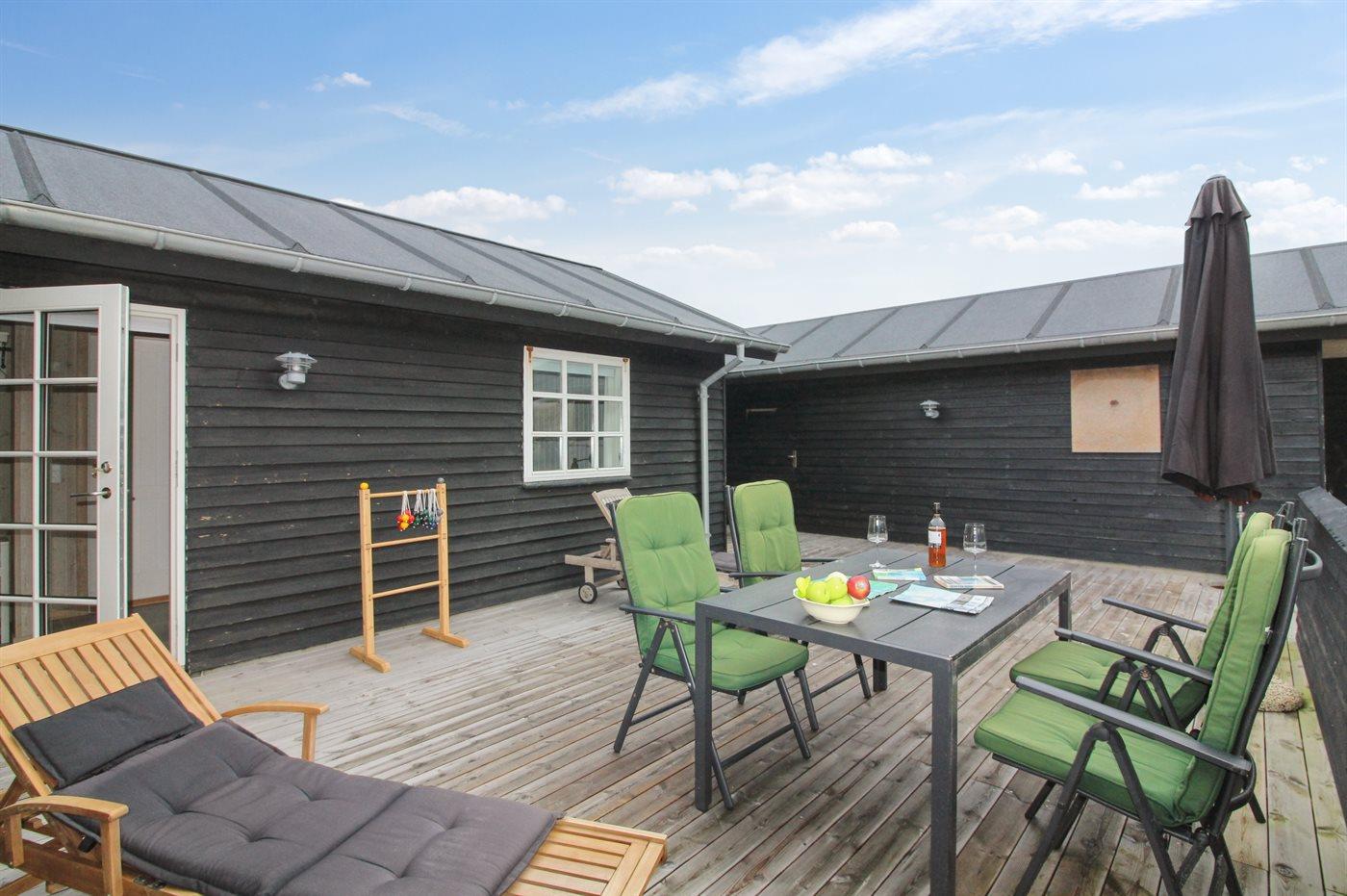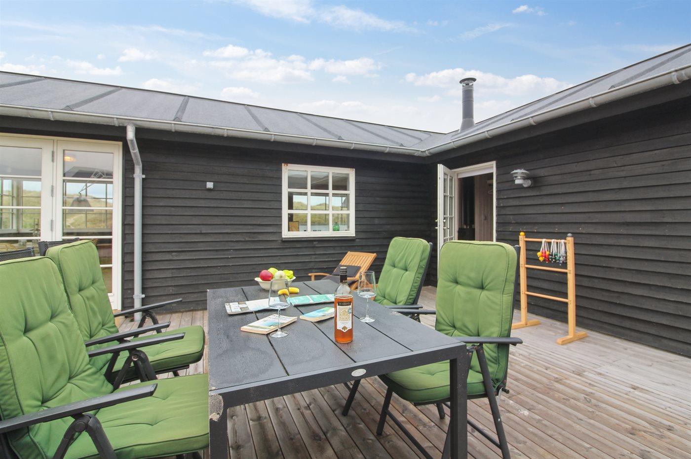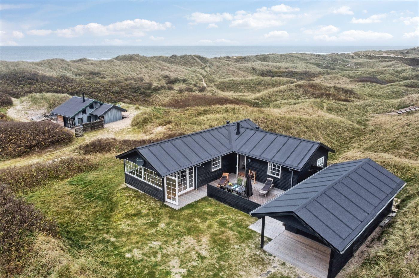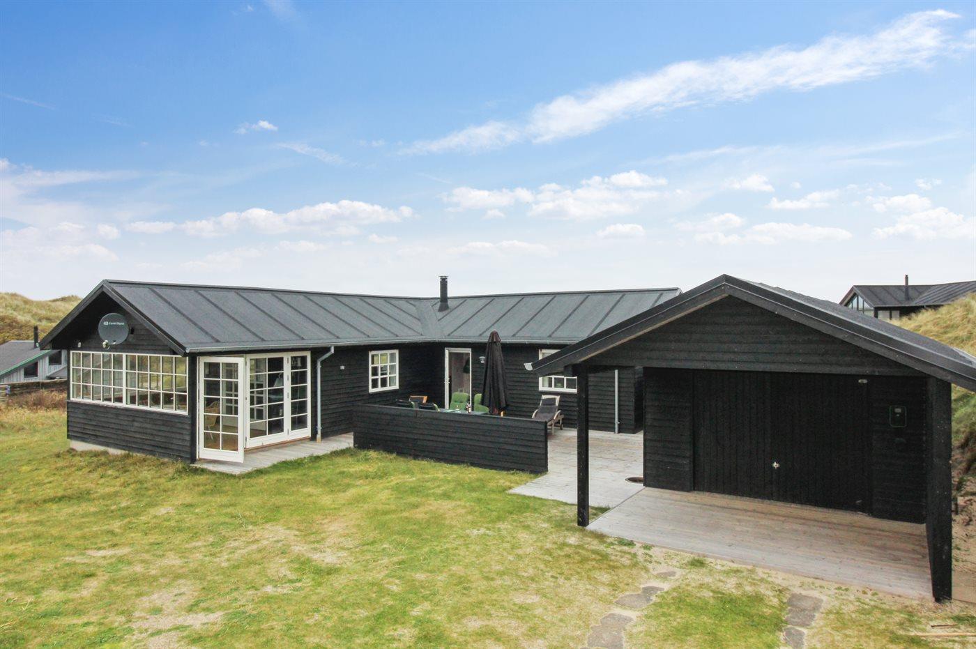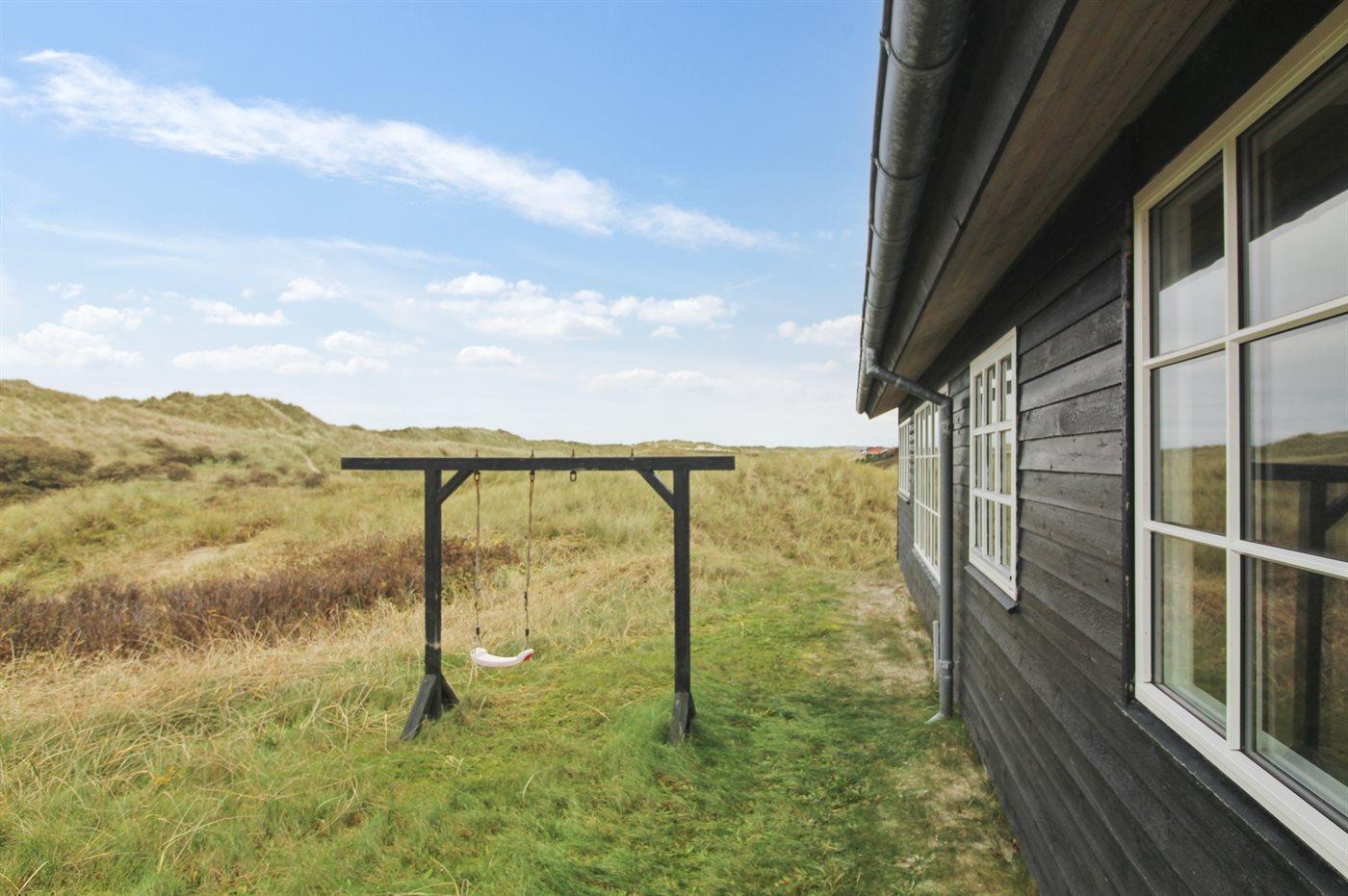 Ferieboligen er beliggende på en 1391 m² stor klitgrund. Der er 150 m til havet. Nærmeste forretning er beliggende i en afstand af 5000 m. Der er en golfbane i en afstand af 5500 m. Til ferieboligen hører åbent terrasseareal. Desuden er der overdækket terrasse. Ligeledes er der adgang til udestue. Udendørs bruser. Grill til rådighed. Der er installeret stik til opladning af elbil. Type 2 stik. Parkering ved ferieboligen.