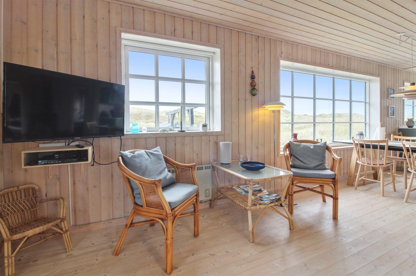 I ferieboligen er der 1 TV.1 Chromecast. Netflix. DVD-afspiller. Der er mindst 4 danske kanaler. 1-3 svenske kanaler. 1-3 norske kanaler. 1-3 tyske kanaler. Der er trådløst internet til rådighed.