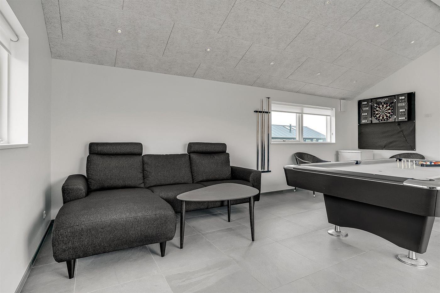 Der er gode aktivitetsmuligheder for hele familien såvel ude som inde samt i det rummelige aktivitetsrum i annekset, som endvidere også er indrettet med soveværelse med 2 sovepladser samt eget badeværelse. Hus og anneks er forbundet med et stort og dejligt terrasseareal.