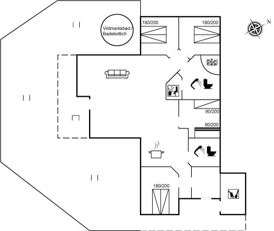 Virkelig flot og rummeligt sommerhus med en smagfuld indretning beliggende på en meget stor og åben grund i et nyt sommerhusområde under opførelse. Det naturskønne område byder på 3 søer og ligger i kort afstand til Vesterhavet og dejlig badestrand. Til huset hører en stor træterrasse, hvor et vildmarksbad står til rådighed både sommer og vinter.