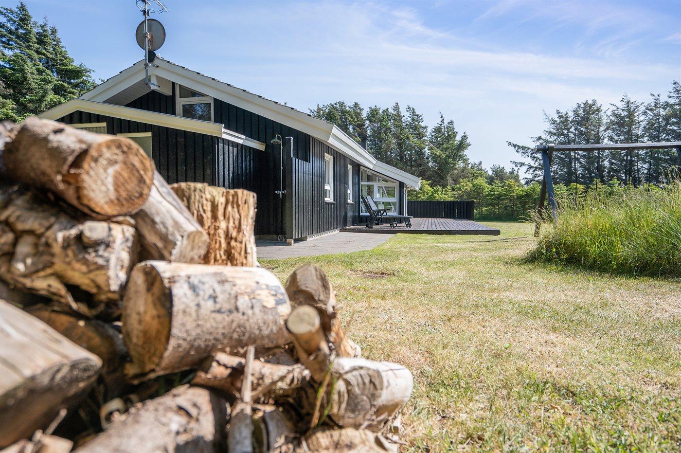 Ferieboligen er beliggende på en 2500 m² stor naturgrund. Der er 375 m til havet. Nærmeste forretning er beliggende i en afstand af 1200 m. Til ferieboligen hører 100 m² terrasseareal. Desuden er der 27 m² overdækket terrasse. Der er redskabsrum. Gynge. Sandkasse. Udendørs bruser. Parkering ved ferieboligen.