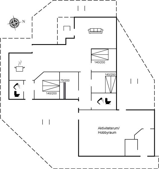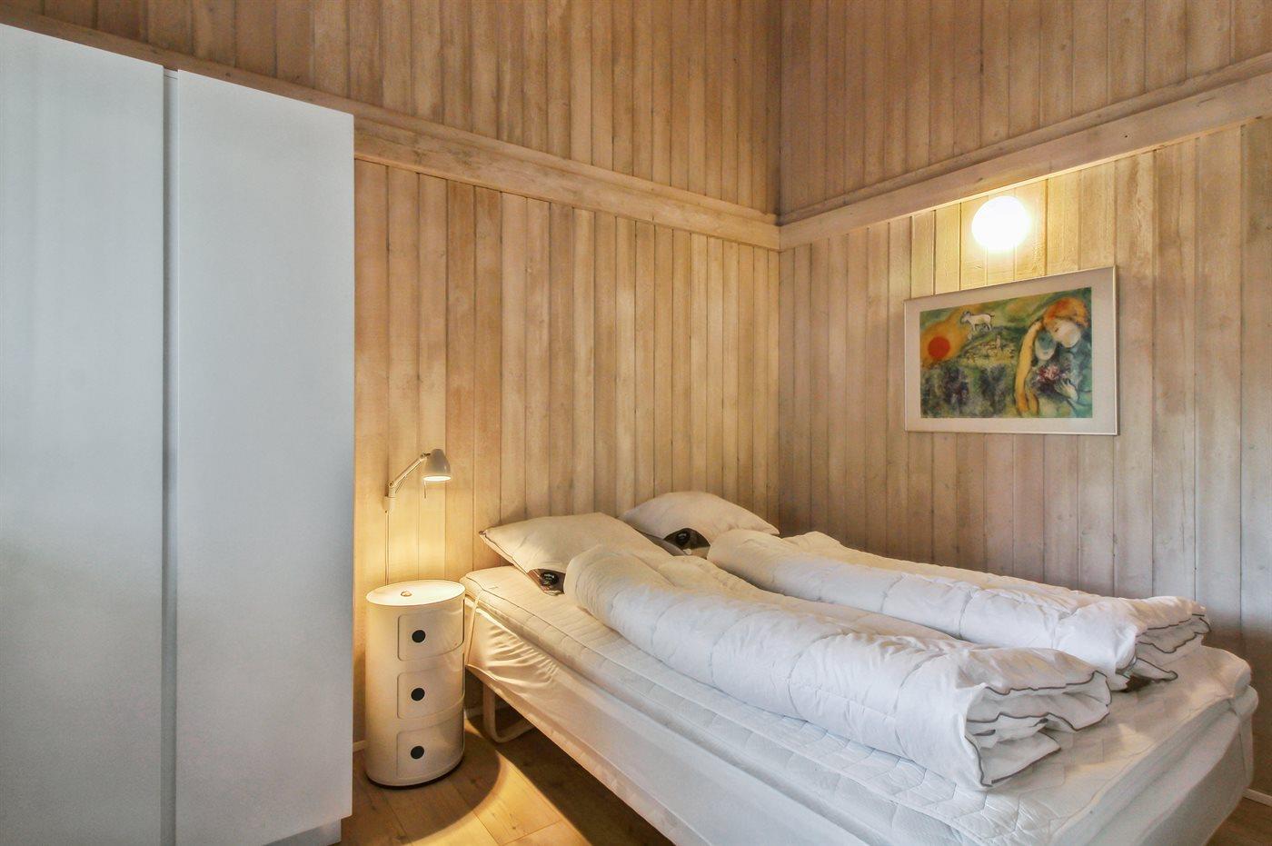 Der er i alt 4 soveværelser. Sovepladserne fordeler sig på: 6 sovepladser i dobbeltsenge. 2 sovepladser i køjeseng. Derudover er der 1 stk. barneseng.