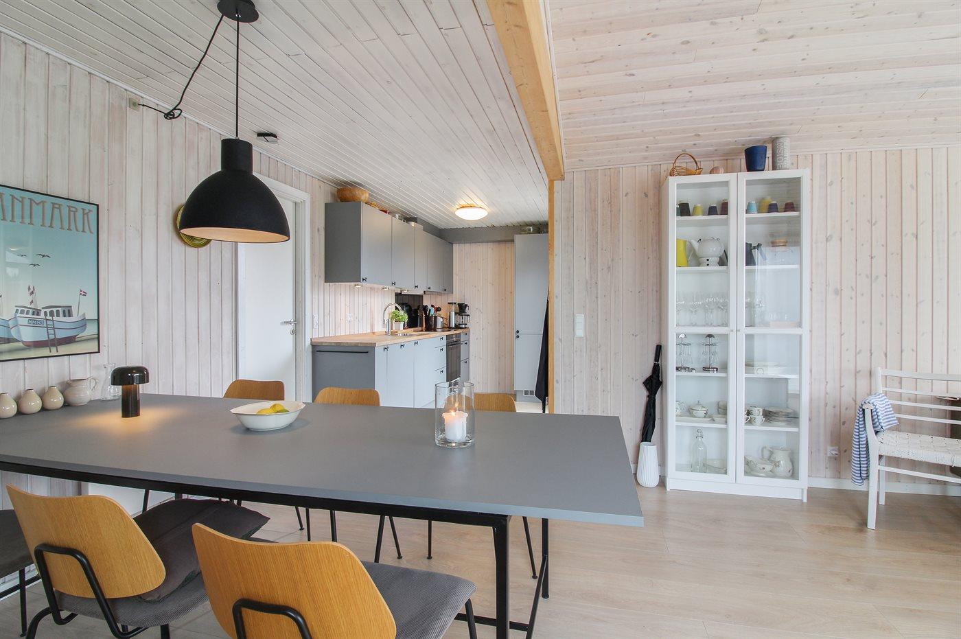 Køkkenet er udstyret med 1 køleskab. Der er 4 induktionskogeplader, varmluftovn, mikrobølgeovn samt opvaskemaskine.