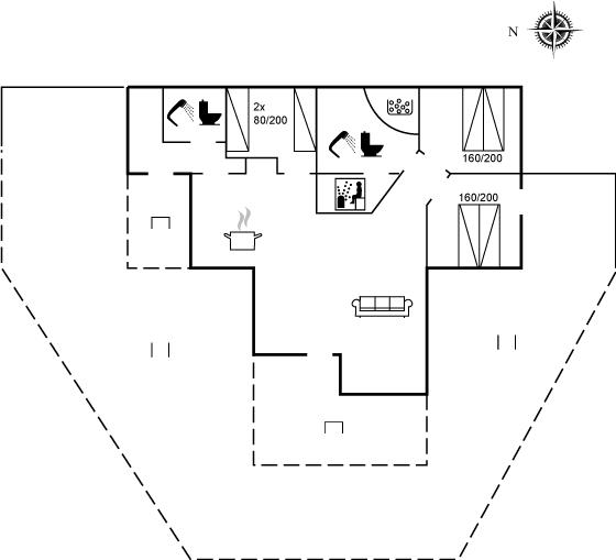 Der er i alt 3 soveværelser. Sovepladserne fordeler sig på: 4 sovepladser i dobbeltsenge. 2 sovepladser i enkeltsenge. Derudover er der 1 stk. barneseng.