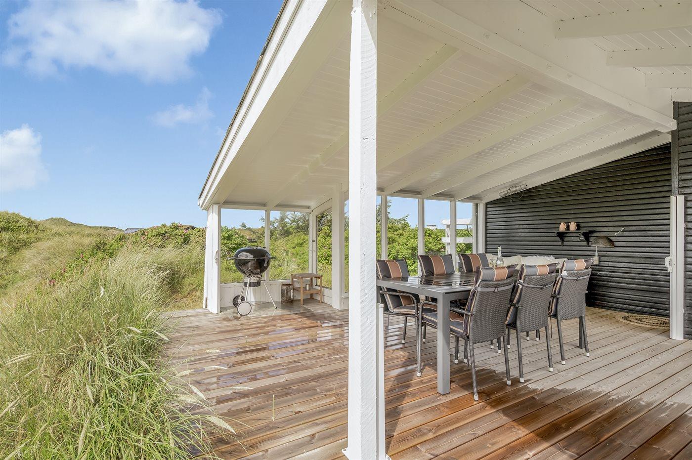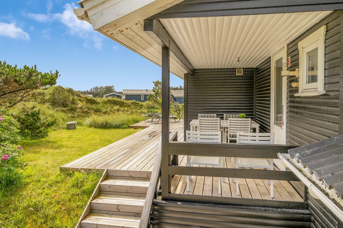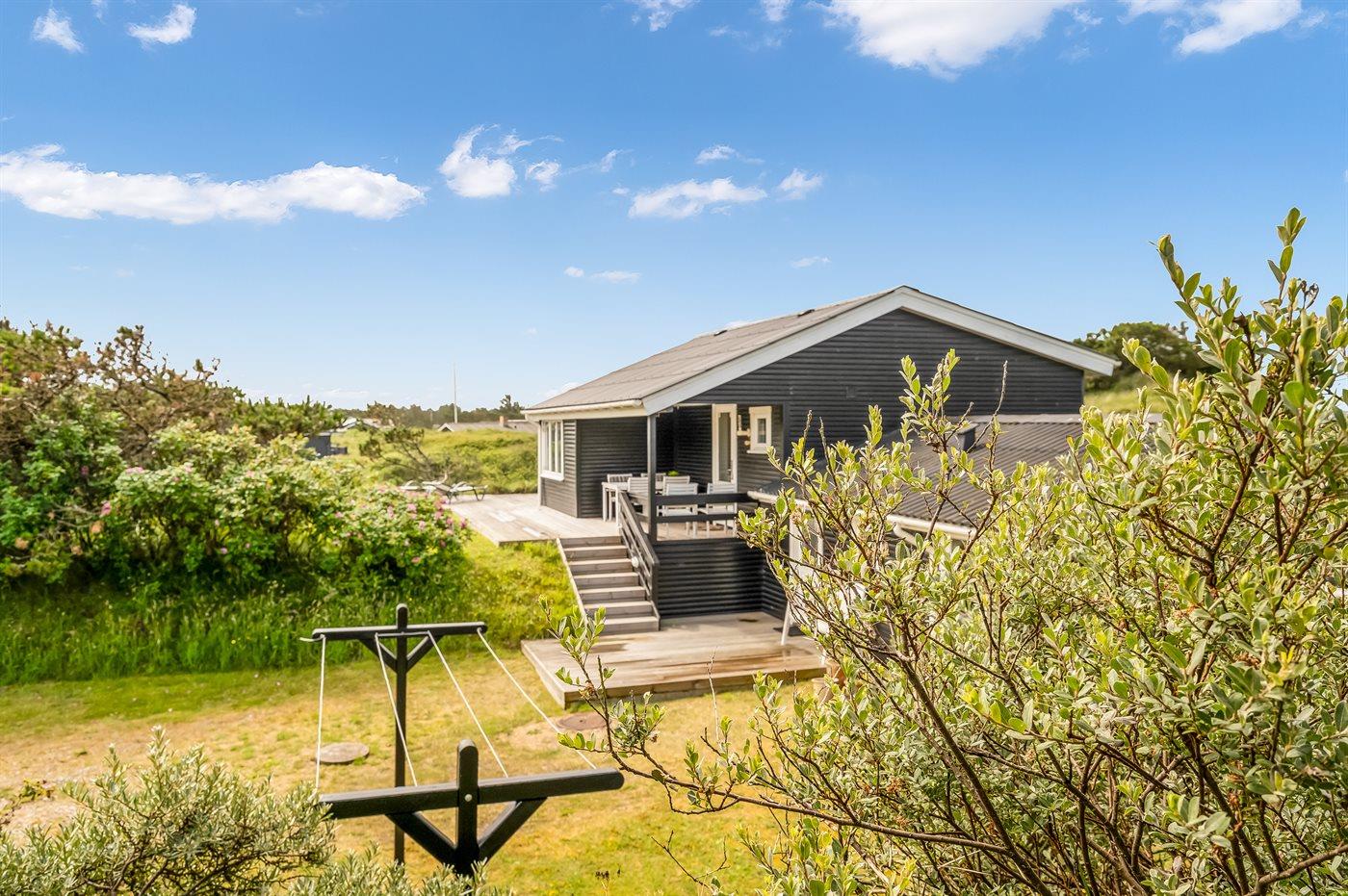 Et velbeliggende sommerhus, hvorfra udsigten over Vesterhavet kan nydes fra det højeste punkt af den dejligt kuperede naturgrund. Huset ligger i ferieområdet Grønhøj kun en kort gåtur fra den dejlige badestrand og ikke langt fra forlystelsesparken Fårup sommerland.