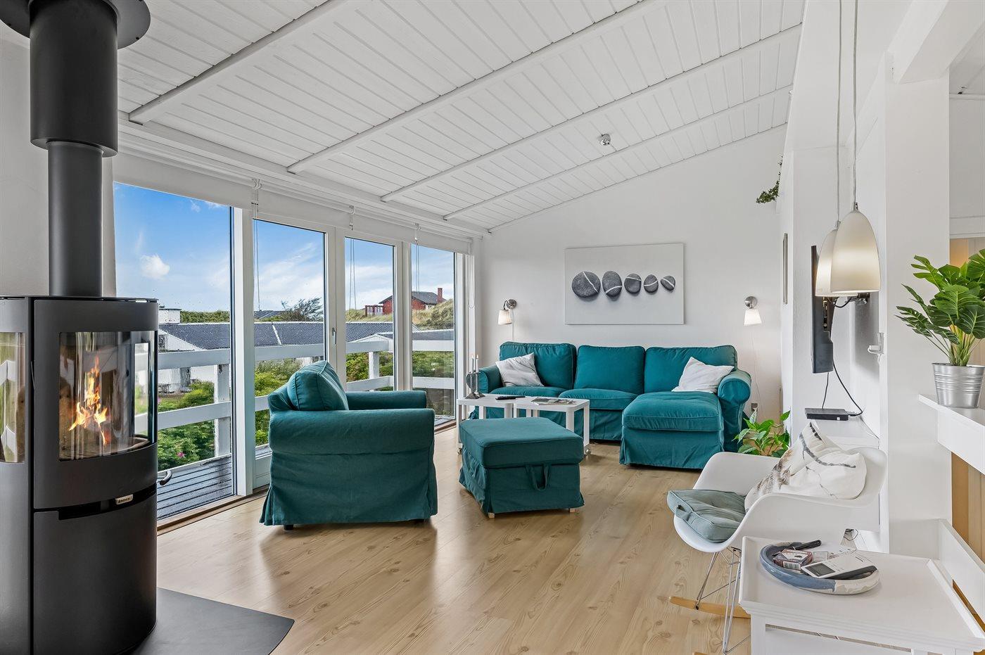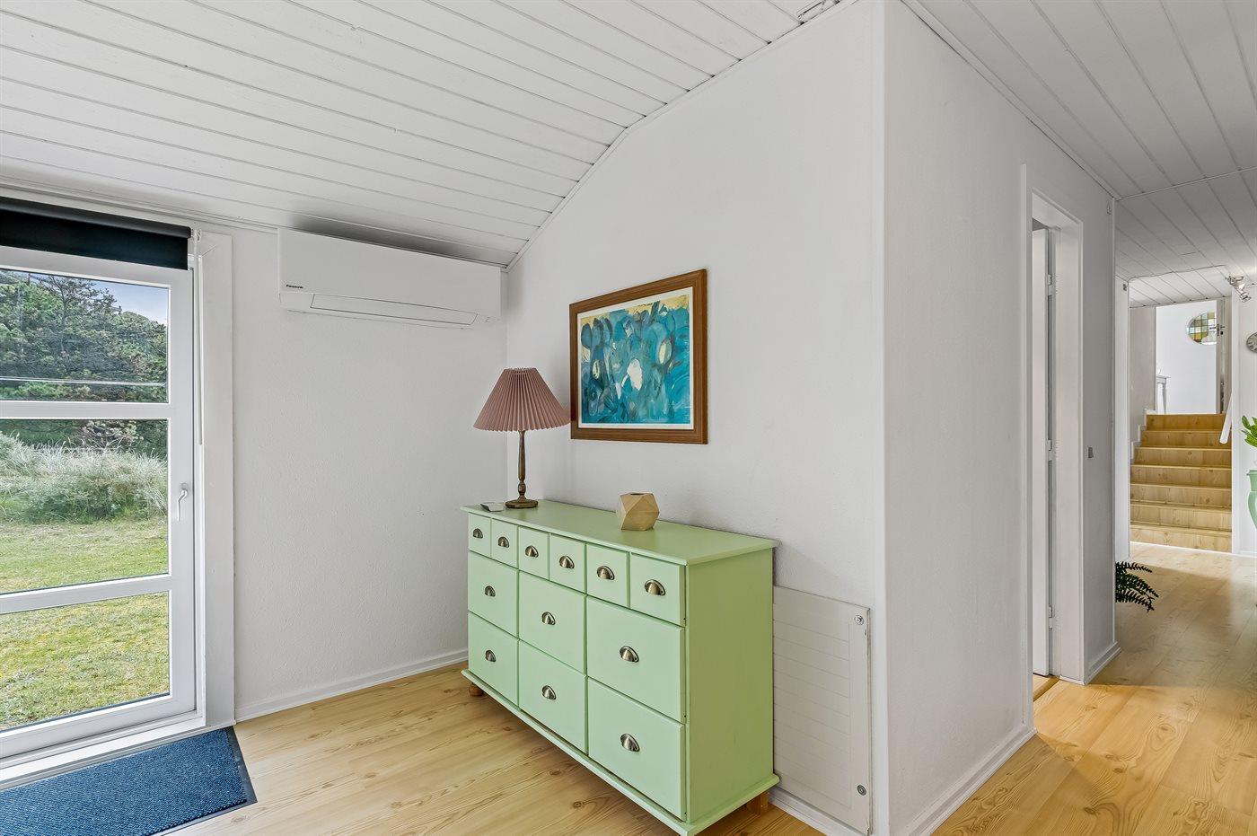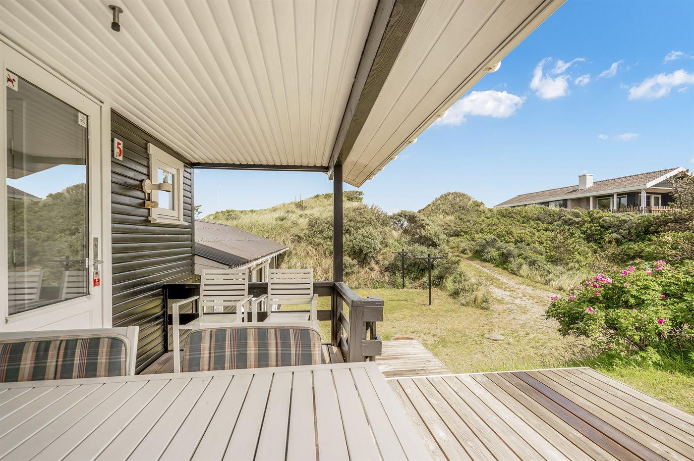 Et velbeliggende sommerhus, hvorfra udsigten over Vesterhavet kan nydes fra det højeste punkt af den dejligt kuperede naturgrund. Huset ligger i ferieområdet Grønhøj kun en kort gåtur fra den dejlige badestrand og ikke langt fra forlystelsesparken Fårup sommerland.
