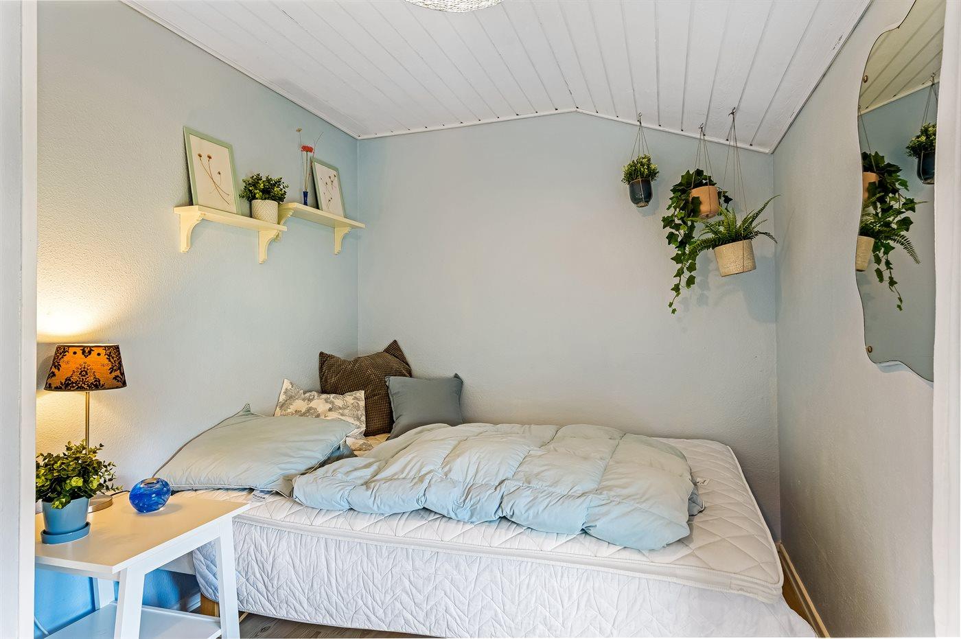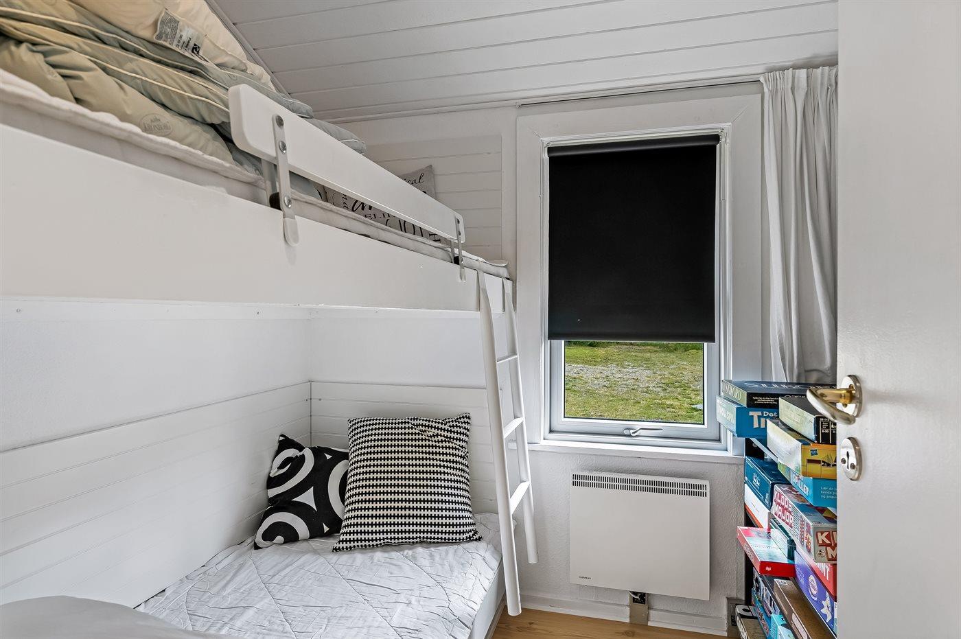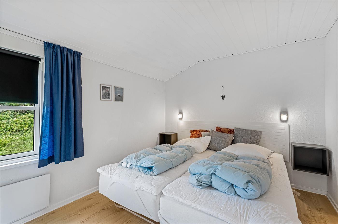 Der er i alt 3 soveværelser. Sovepladserne fordeler sig på: 4 sovepladser i dobbeltsenge. 2 sovepladser i køjeseng. Derudover er der 1 stk. barneseng.