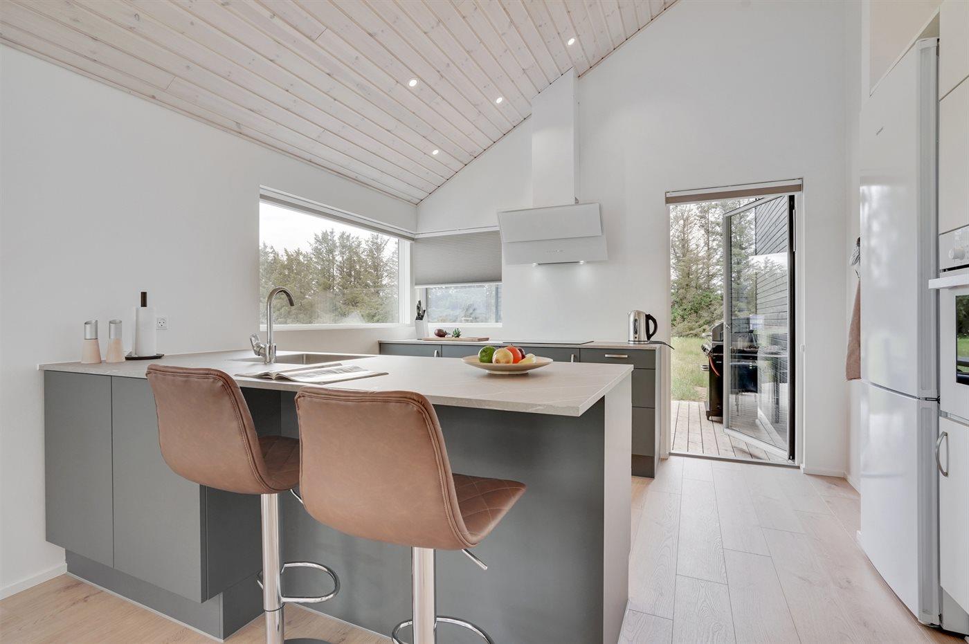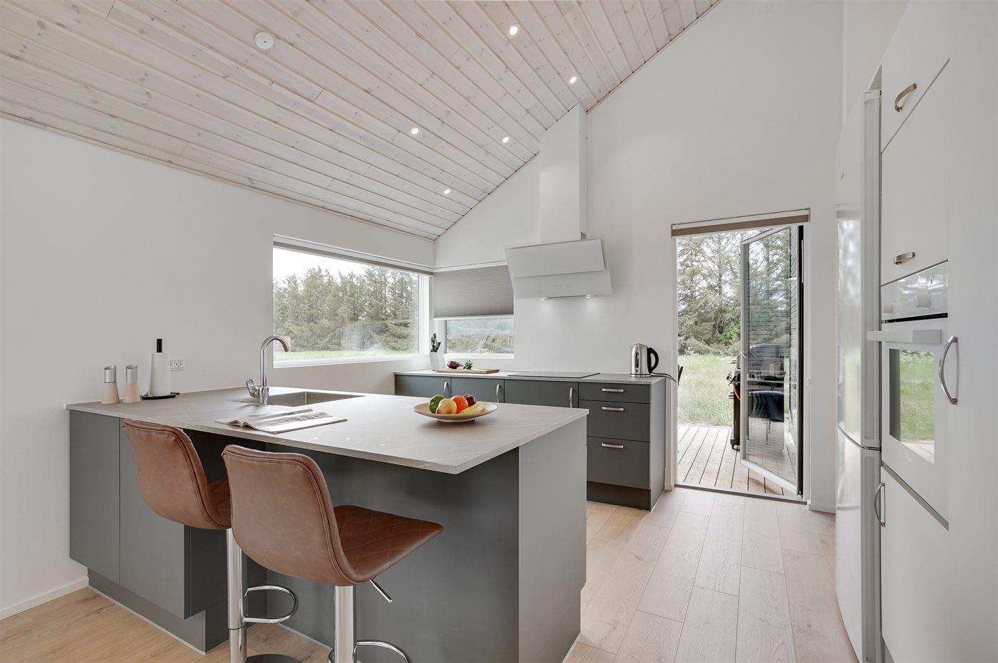 Køkkenet er udstyret med 1 køleskab. Der er 4 induktionskogeplader, varmluftovn, mikrobølgeovn samt opvaskemaskine.