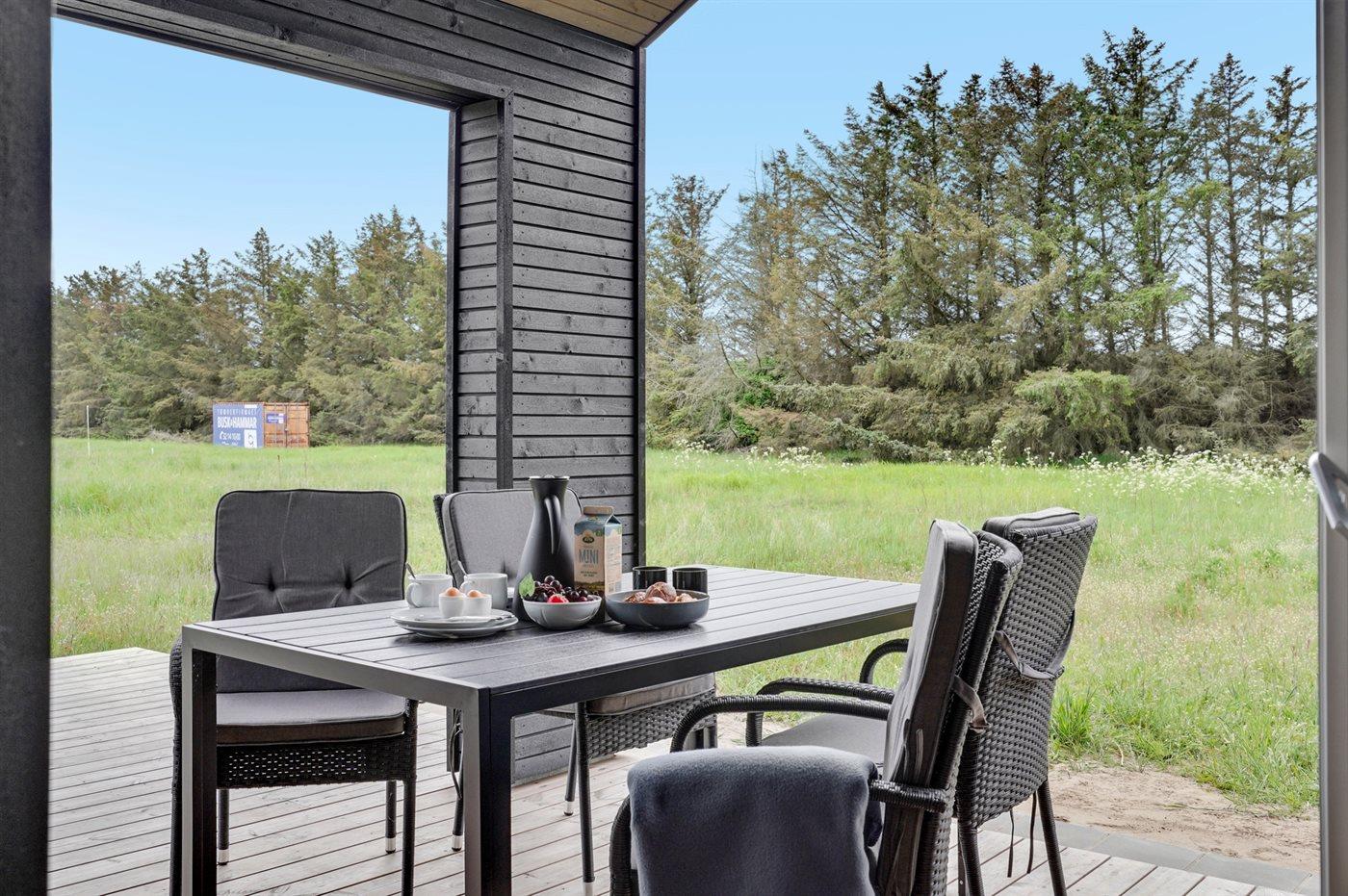 Ferieboligen er beliggende på en 2280 m² stor naturgrund. Der er 1500 m til havet. Nærmeste forretning er beliggende i en afstand af 1200 m. Til ferieboligen hører åbent terrasseareal. Desuden er der overdækket terrasse. Grill til rådighed. Der er installeret stik til opladning af elbil. Parkering ved ferieboligen.