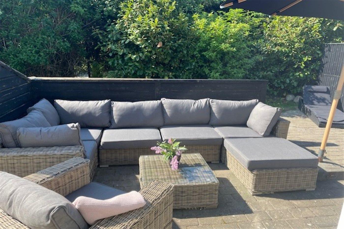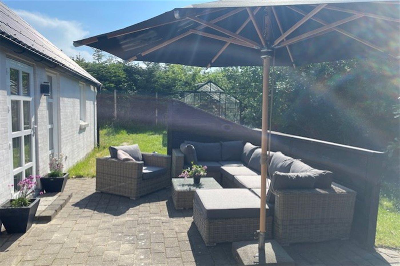 Ferieboligen er beliggende på en 250 m² stor naturgrund. Grunden er indhegnet. Der er 500 m til havet. Nærmeste forretning er beliggende i en afstand af 300 m. Til ferieboligen hører åbent terrasseareal. Gynge. Sandkasse. Rutchebane. Grill til rådighed. Der er installeret stik til opladning af elbil. Parkering ved ferieboligen.